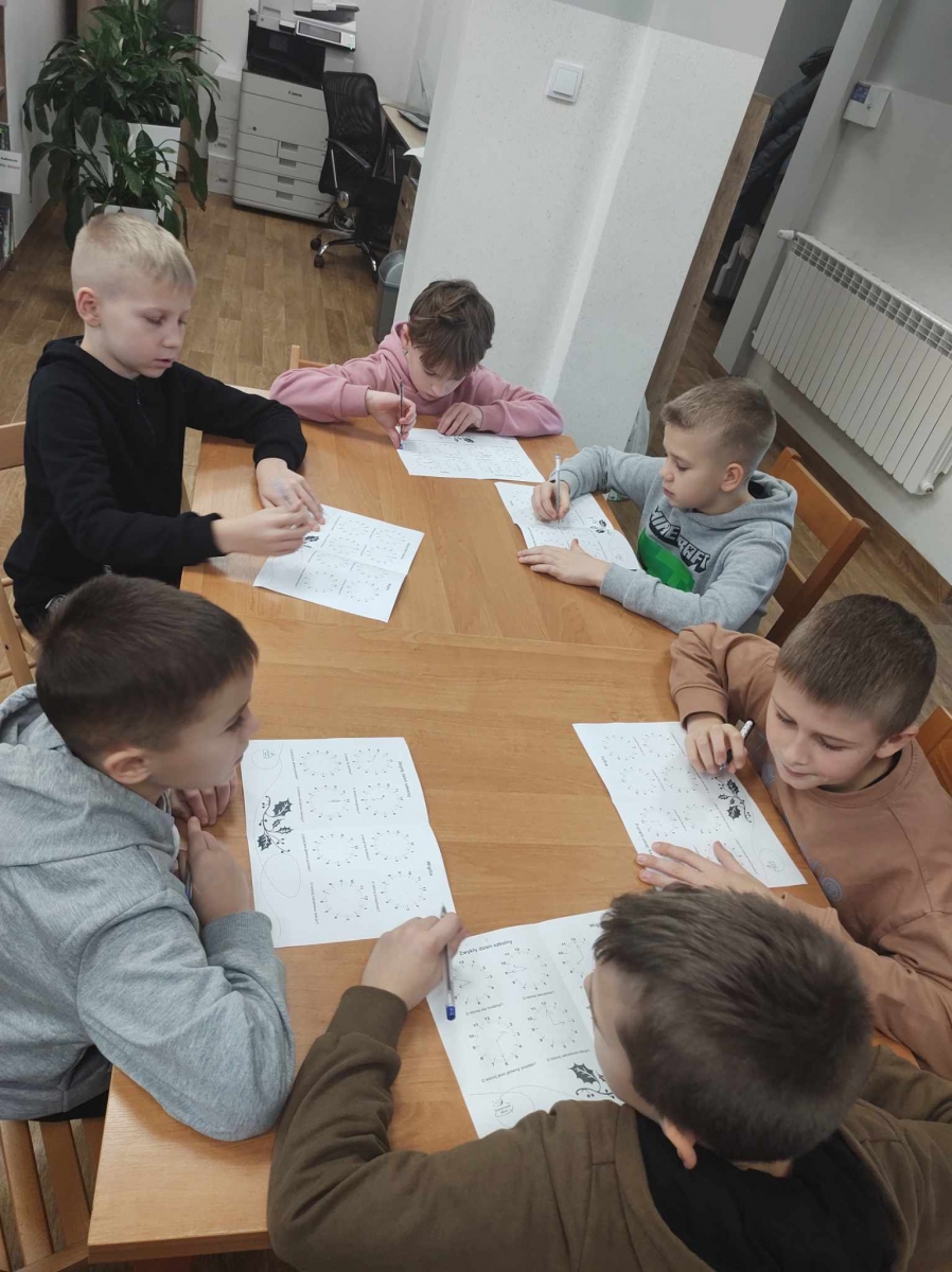 Następnie dzieci wypełniły karty pracy, na których zaznaczały pory spożywania posiłków, odrabiania lekcji, wstawania i kładzenia się spać w czasie codziennym oraz w czasie świątecznym. Celem było ukazanie wyjątkowości czasu bożonarodzeniowego.