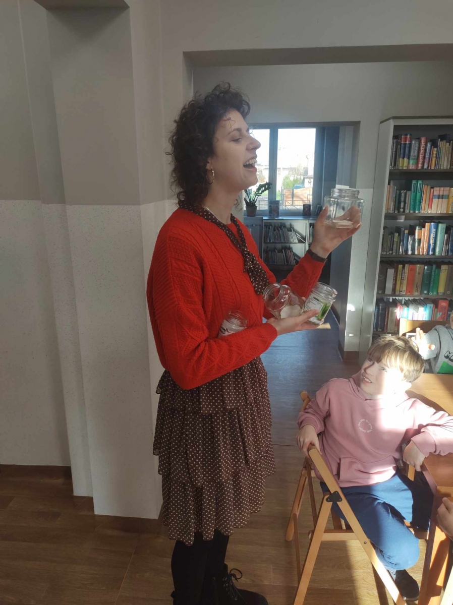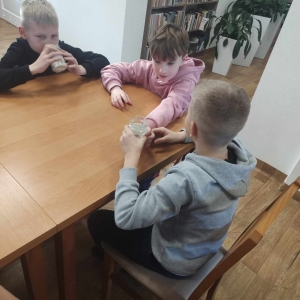 Uczniowie używali zmysłów, aby „poczuć święta”. Wąchali zapachy ukryte w słoiczkach, czyli woń goździków, pierników, mandarynek oraz cynamonu. Dzieci wspólnie się zgodziły, że mogą także poczuć święta poprzez zmysł słuchu – słuchając kolęd, piosenek świątecznych, oraz przez zmysł smaku – jedząc potrawy wigilijne, na przykład barszcz, czy kapustę z grzybami.