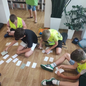 Goście zwiedzili kobylińską Bibliotekę. Poznali tajniki pracy bibliotekarza. Ważnym punktem spotkania był spacer po budynku. Najmłodsi byli bardzo ciekawi co i gdzie mieści się w naszej książnicy. Na zakończenie wizyty na uczniów czekała niespodzianka – konkurs. Należało ułożyć karty książki według kolejności, a trzech najbystrzejszych uczestników zostało nagrodzonych.