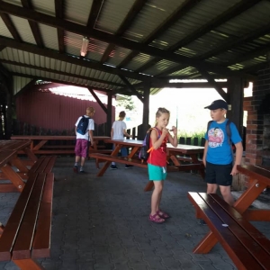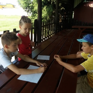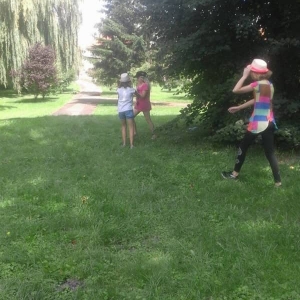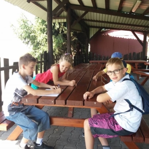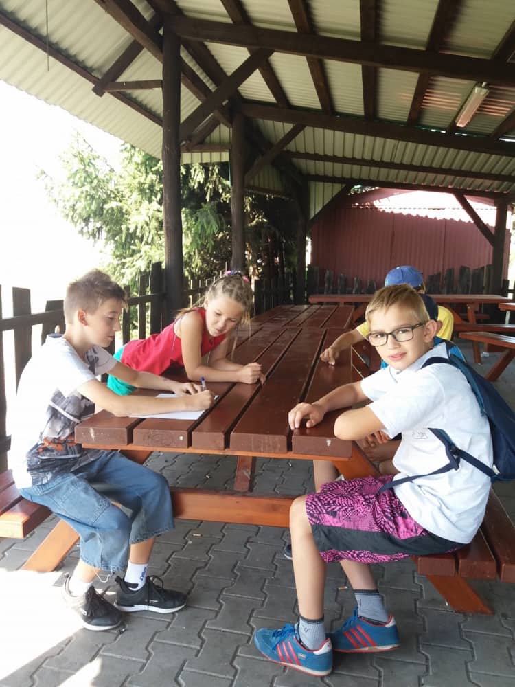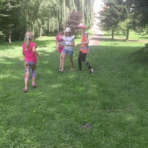 W środę 9 sierpnia wybraliśmy się na boisko Orlik w Kobylinie. Na początku graliśmy w dwa ognie. Drużyny bardzo zawzięcie ze sobą walczyły. Kolejną atrakcją było bicie rekordu w skakaniu na skakance. Co ciekawe do zabawy bardzo chętnie dołączyła męska płeć, która zarazem okazała się najlepsza. Zwycięzca uzyskał sto dwanaście podskoków. Dalsze zabawy, takie jak gra w piłkę nożną, murarza sprawiły dzieciom wiele radości. Jednak najwięcej śmiechu na naszych twarzach wywołała gra w kalambury, w której uczestnicy pokazali swoje znakomite umiejętności aktorskie. Na zakończenie dnia na dzieci czekał słodki poczęstunek, ale także opiekunowie zostali obdarowani drobnym prezentem, przez swoich podopiecznych. Był to bardzo miły gest z ich strony, za który bardzo dziękujemy.
