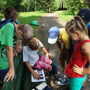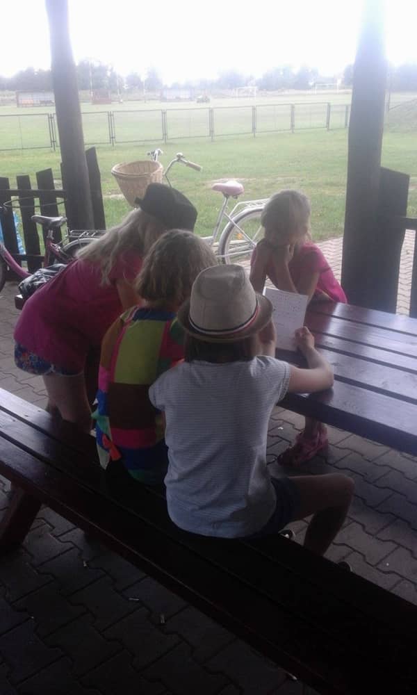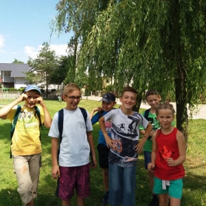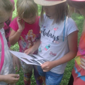 Pierwszego dnia ,,Wakacji z Biblioteką” odbyła się gra miejska ,,Kobylin – moja mała ojczyzna”. Zabawa miała na celu sprawdzenie wiedzy dzieci z zakresu historii, kultury naszej gminy. Uczestnicy zostali podzieleni na trzy grupy. Każda z nich szukała zagadek ukrytych w wyznaczonych miejscach (Park Solidarności, plac zabaw, boisko przy ulicy Grobla, teren przy sali Pilawa). Choć łamigłówki były dobrze ukryte, a ich poziom nie należał do najłatwiejszych, wszyscy poradzili sobie znakomicie. Interesujące okazały się rymowanki na temat Kobylina, które dzieci tworzyły. Poniżej zaprezentowany jest najciekawszy wierszyk: