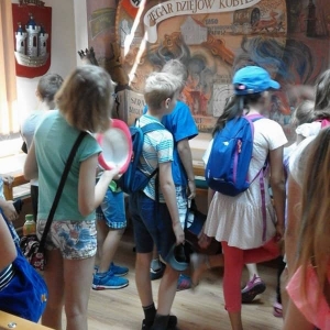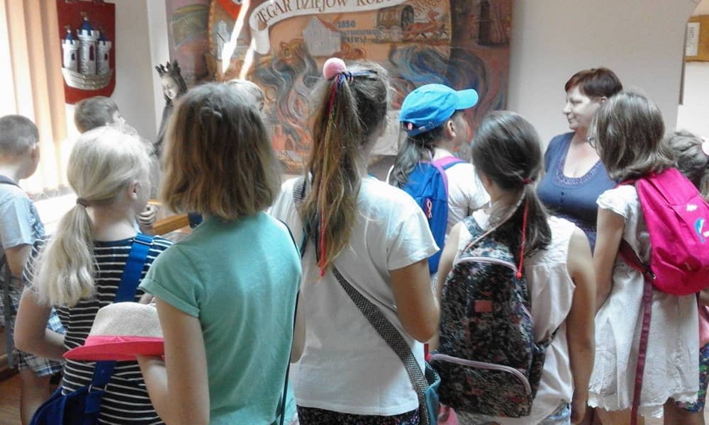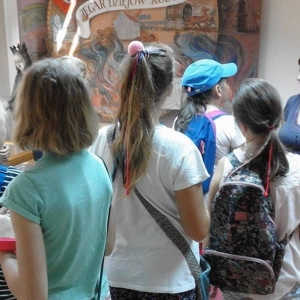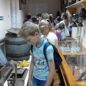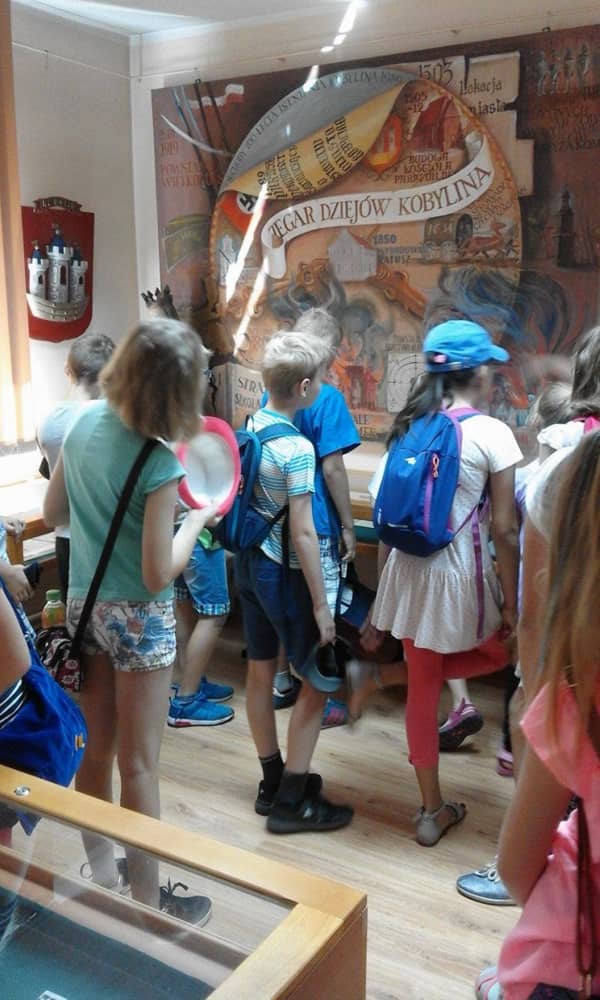 Następnego dnia opiekunowie wraz z dziećmi udali się do Muzeum Ziemi Kobylińskiej. Pani Regina Wasielewska oprowadzała nas po pomieszczeniach, pokazując i ciekawie omawiając historię eksponatów , starych zdjęć, a także dawnych przedmiotów codziennego użytku. Uczestnicy słuchali przewodnika z zaciekawieniem i chętnie zadawali pytania na temat historii ziemi kobylińskiej.