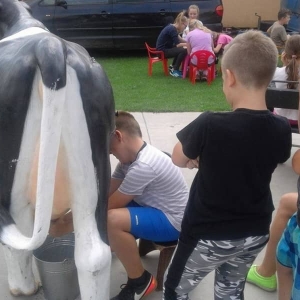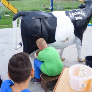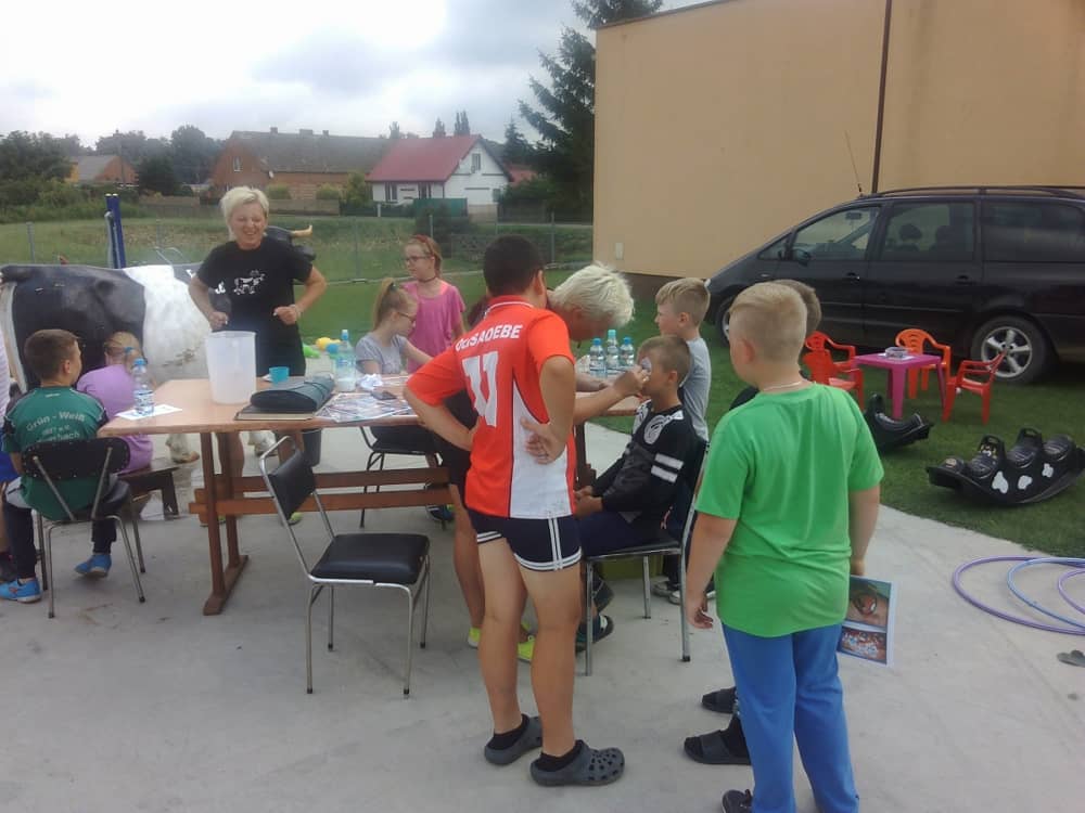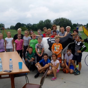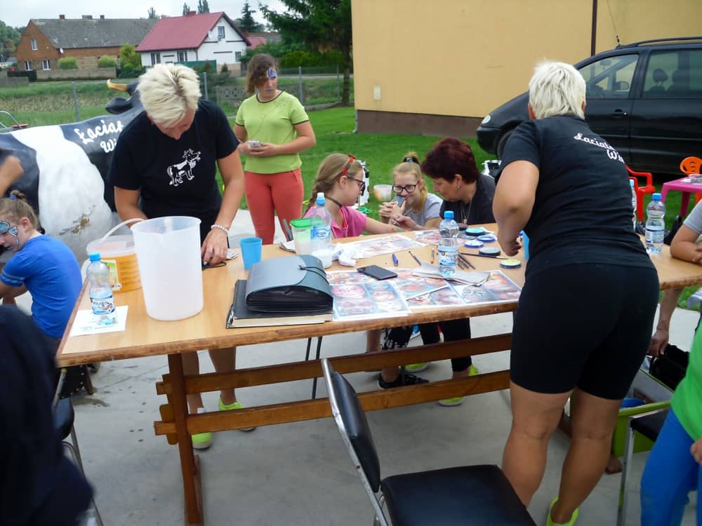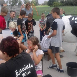 W czwartek 10 sierpnia oraz piątek 11 sierpnia 2017r. Filia Biblioteczna w Łagiewnikach wraz ze świetlicą zorganizowały „Wakacje z Biblioteką”. W pierwszym dniu gośćmi były przedstawicielki Stowarzyszenia Łaciata Wieś, które pokazały jak należy doić krowę. Każdy uczestnik mógł spróbować swoich sił. Zajęcie to okazało się nie tak łatwe na jakie wyglądało. Panie z Łaciatej Wsi przyozdabiały również twarze dzieci rysunkami. Uczyliśmy się tańca Makarena, a na koniec spotkania wszyscy zagrali w ,,Dwa ognie”. Walka była zacięta, ale wygrali najlepsi.