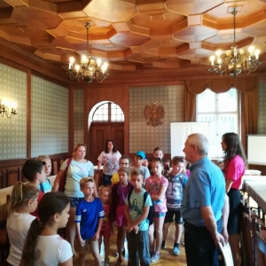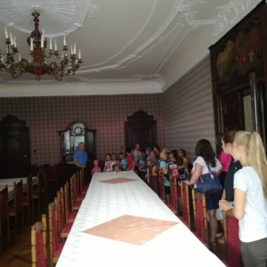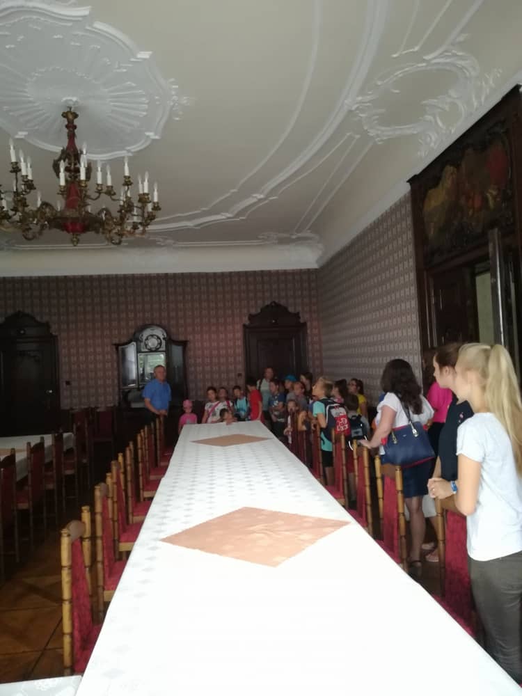 W środę, 16 sierpnia udaliśmy się wraz z najmłodszymi czytelnikami do pałacu w Smolicach, po którym oprowadzał nas Pan Sławomir Zagierski. Mieliśmy okazję zobaczyć salę konferencyjną, niegdyś balową, jadalnię oraz gabinet prezesa Hodowli Roślin Smolice. Na zakończenie otrzymaliśmy notesy, długopisy i breloki z logo HR Smolice.