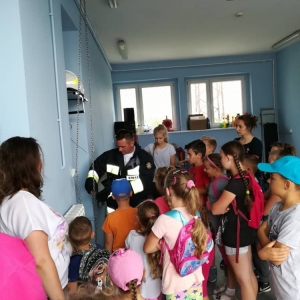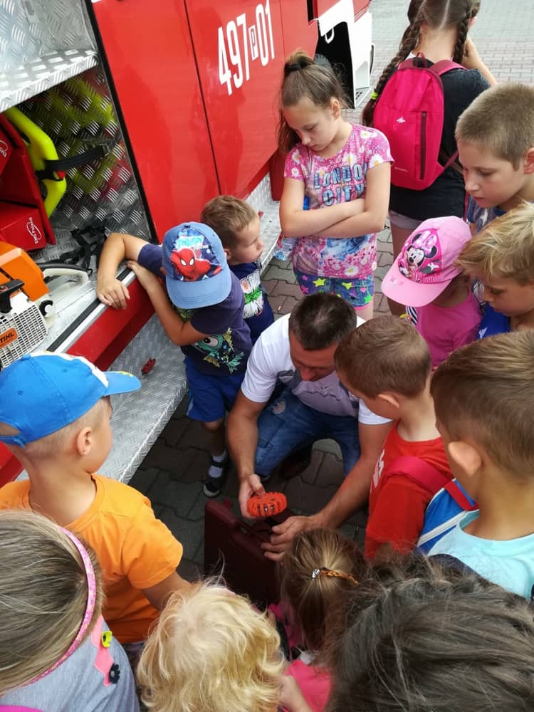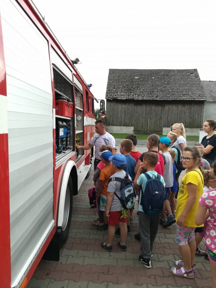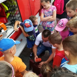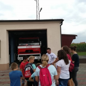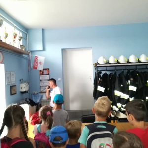 Następnie skierowaliśmy się w kierunku Ochotniczej Straży Pożarnej w Smolicach, gdzie czekał na nas prezes OSP Smolice- Pan Wiesław Skowroński. Na miejscu dowiedzieliśmy się wielu ciekawych rzeczy na temat pracy strażaka i obejrzeliśmy samochód strażacki.