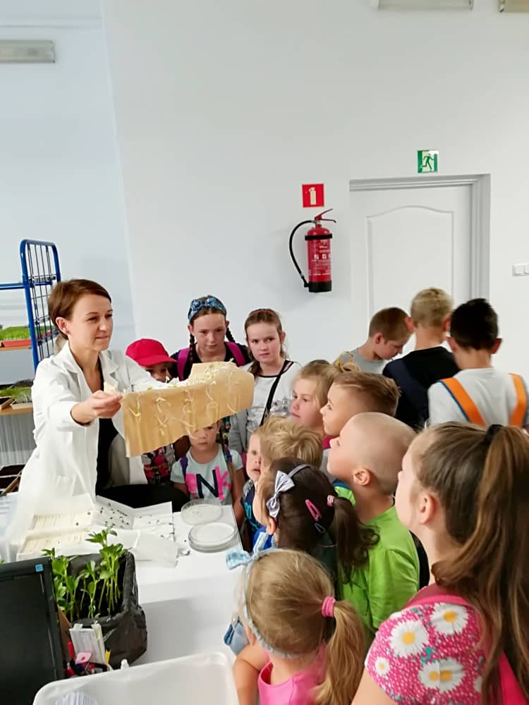 Jednak główną atrakcją dnia była wycieczka do Przedsiębiorstwa Hodowlano-Nasiennego W. Legutko w Jutrosinie. Na miejscu dowiedzieliśmy się czym zajmuje się firma oraz zostaliśmy oprowadzeni po zakładzie. Zobaczyliśmy chłodnię, laboratorium oraz magazyny. Na koniec spotkania otrzymaliśmy nasiona kwiatów i warzyw do zasiania we własnym ogródku.