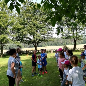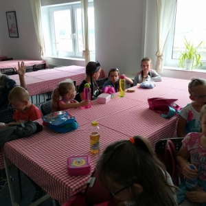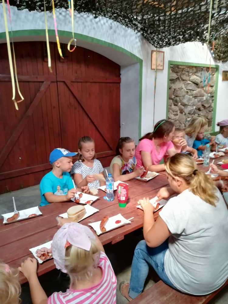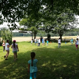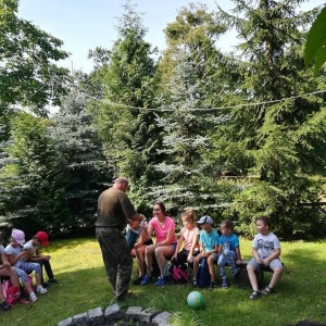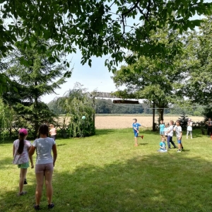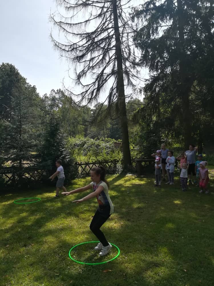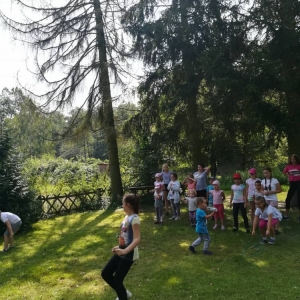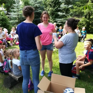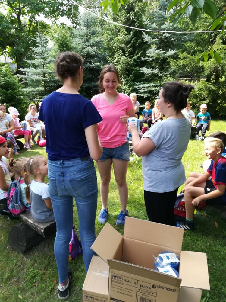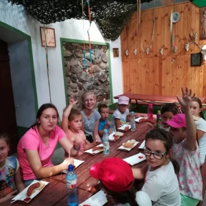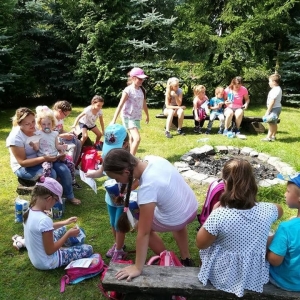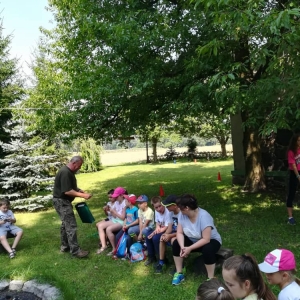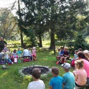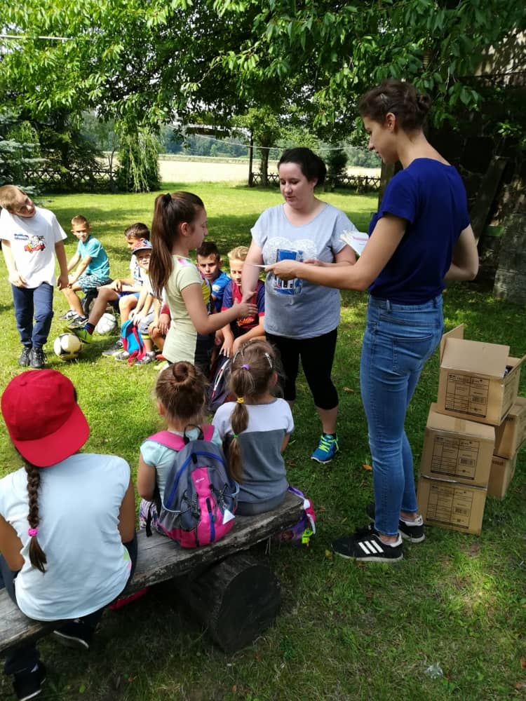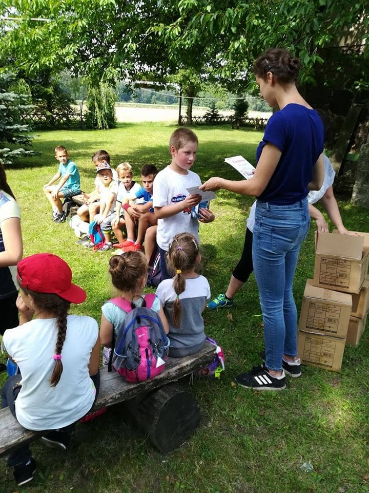 W ostatnim dniu Wakacji z Biblioteką udaliśmy się na teren leśniczówki w Smolicach. Po dotarciu na miejsce leśniczy Pan Krzysztof Błaszyk opowiedział nam pokrótce o pobliskich lasach, podarował każdemu zakładkę do książki oraz życzył udanej zabawy. Następnie odbyły się wyścigi i inne zajęcia ruchowe, po których każdemu zaostrzył się apetyt –nadszedł więc czas na kiełbasę z grilla. Tak właśnie zakończyliśmy Wakacje z Biblioteką w Smolicach. Każdy uczestnik otrzymał imienne podziękowanie oraz dzbanek z kubkami z motywem Kaczora Donalda, który został ufundowany przez firmę Zakłady Mięsne BM Kobylin.
