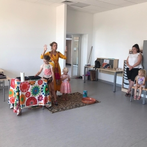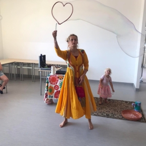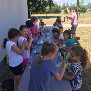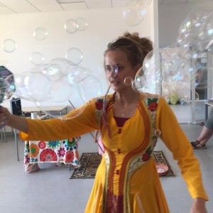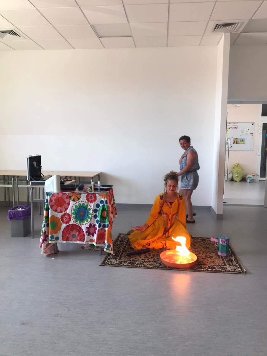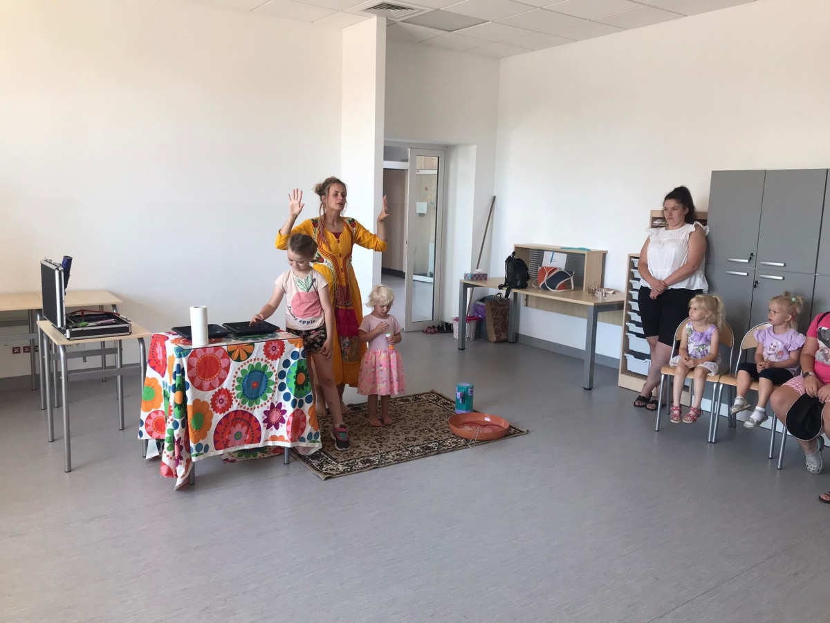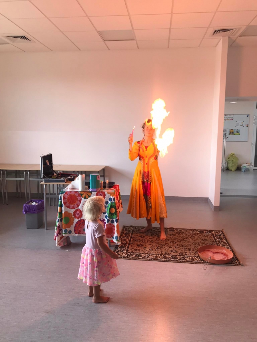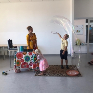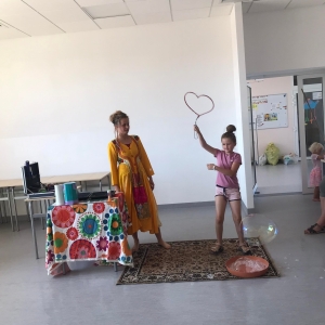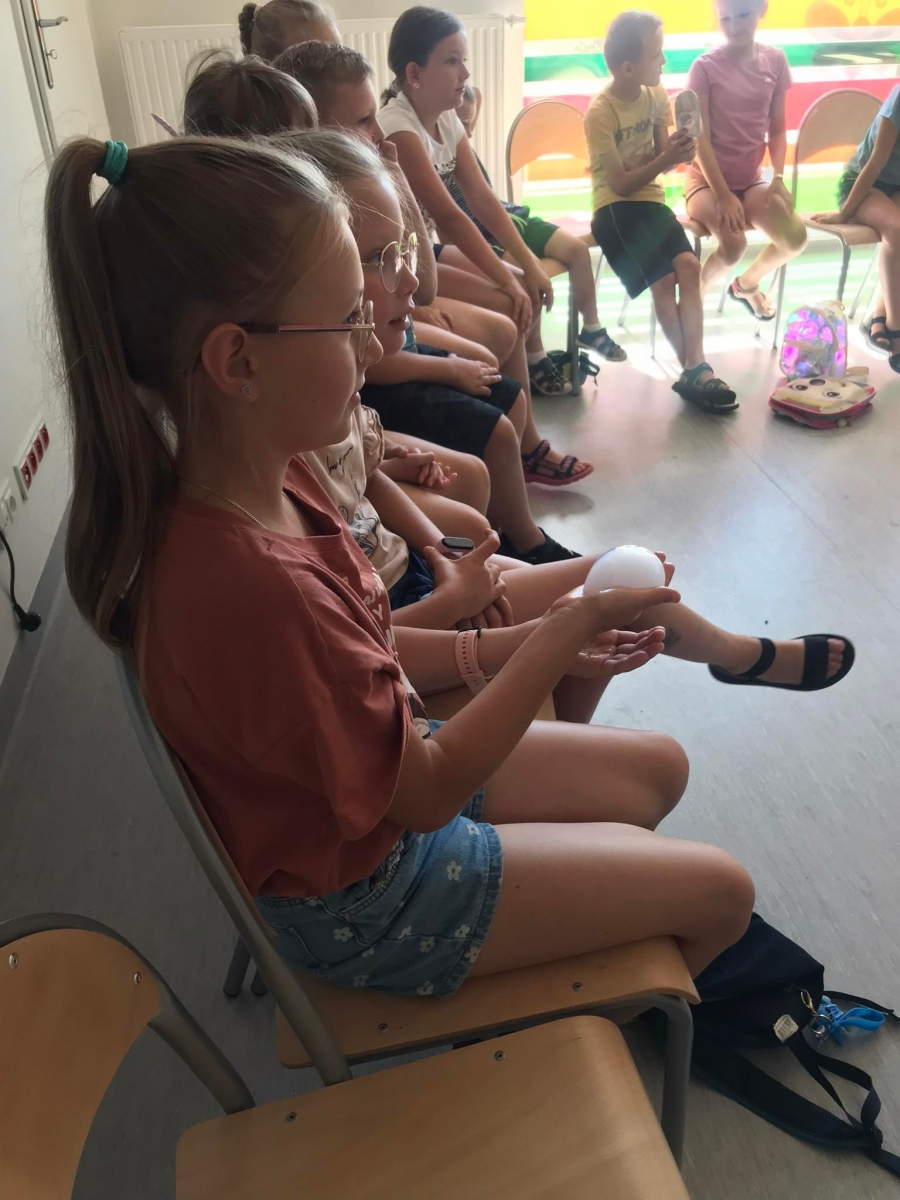 18 lipca 2023 r. Filia Biblioteczna w Smolicach zorganizowała zajęcia dla dzieci w ramach Wakacji z Biblioteką. Dzięki uprzejmości Pani Marleny Kamińskiej działania odbyły się na terenie Przedszkola w Smolicach. Odwiedziła nas niezastąpiona Dorota Jagodzińska DJ – eventy, warsztaty, animacje. Podczas warsztatów z naszym gościem, uczestnicy obejrzeli pokaz baniek mydlanych. Dzieci mogły aktywnie uczestniczyć w ich tworzeniu. Dużym zainteresowaniem cieszyły się bańki posiadające w środku dym. Zebrani chętnie łączyli ze sobą dwie bańki, co okazało się trudnym zadaniem. Warsztaty zakończył pokaz baniek ogniowych, który wywołał okrzyki zachwytu u uczestników.