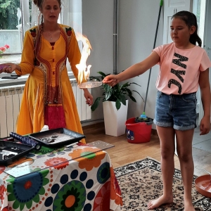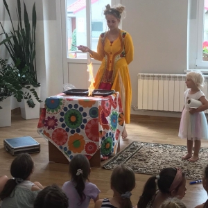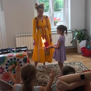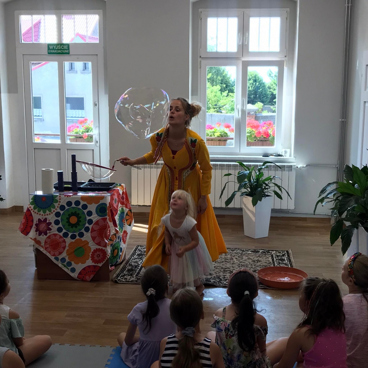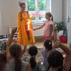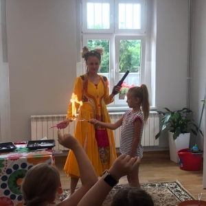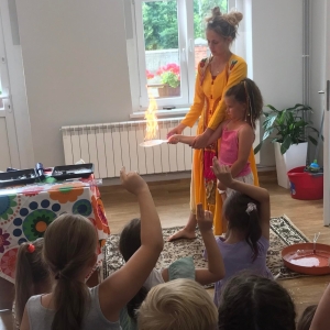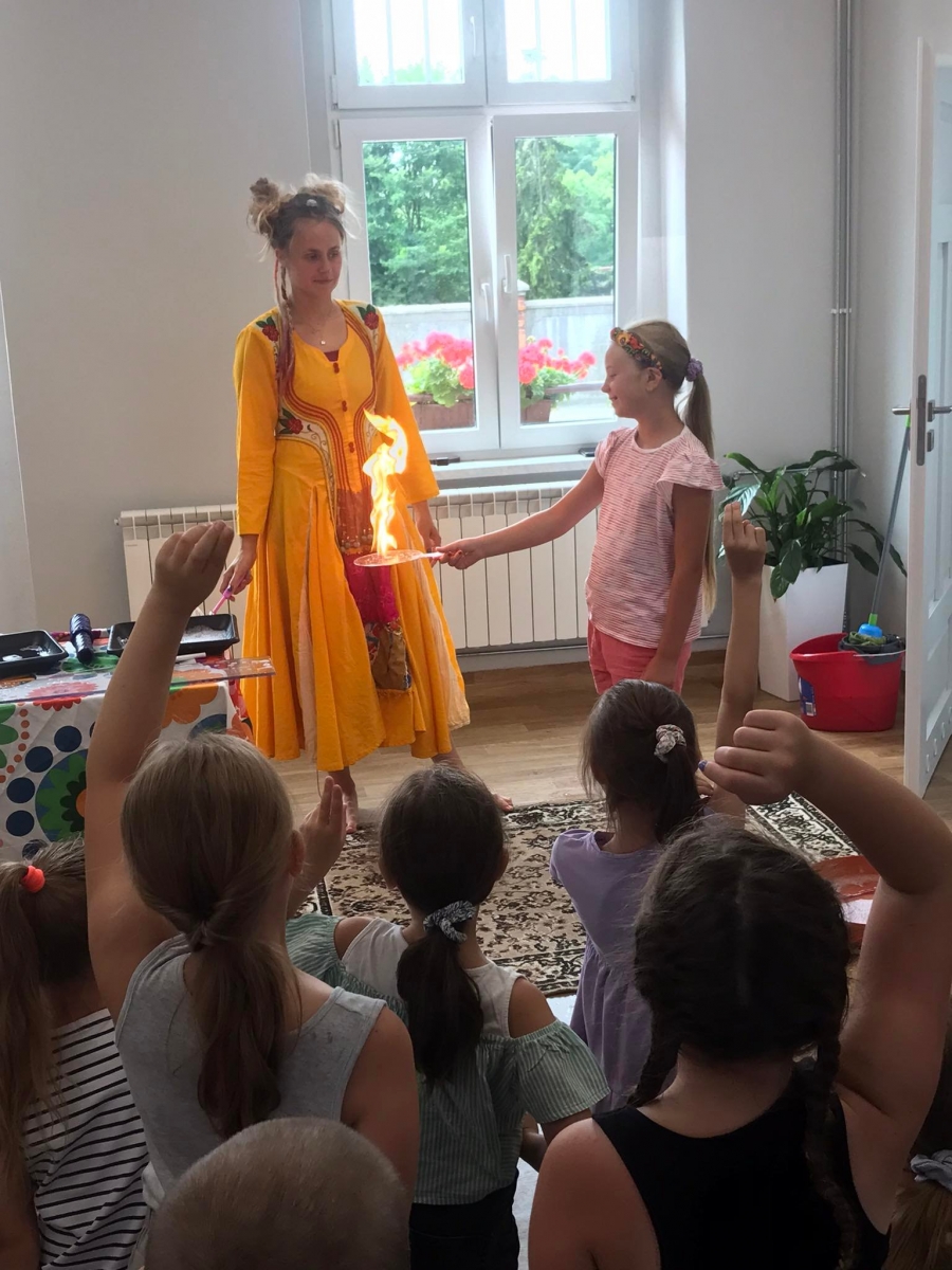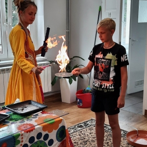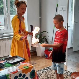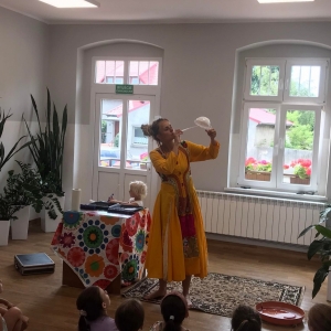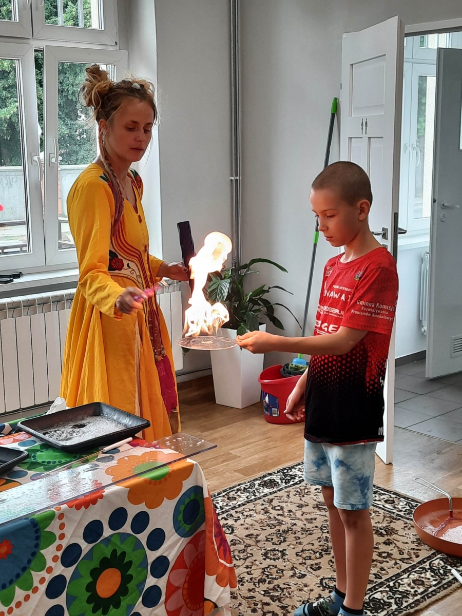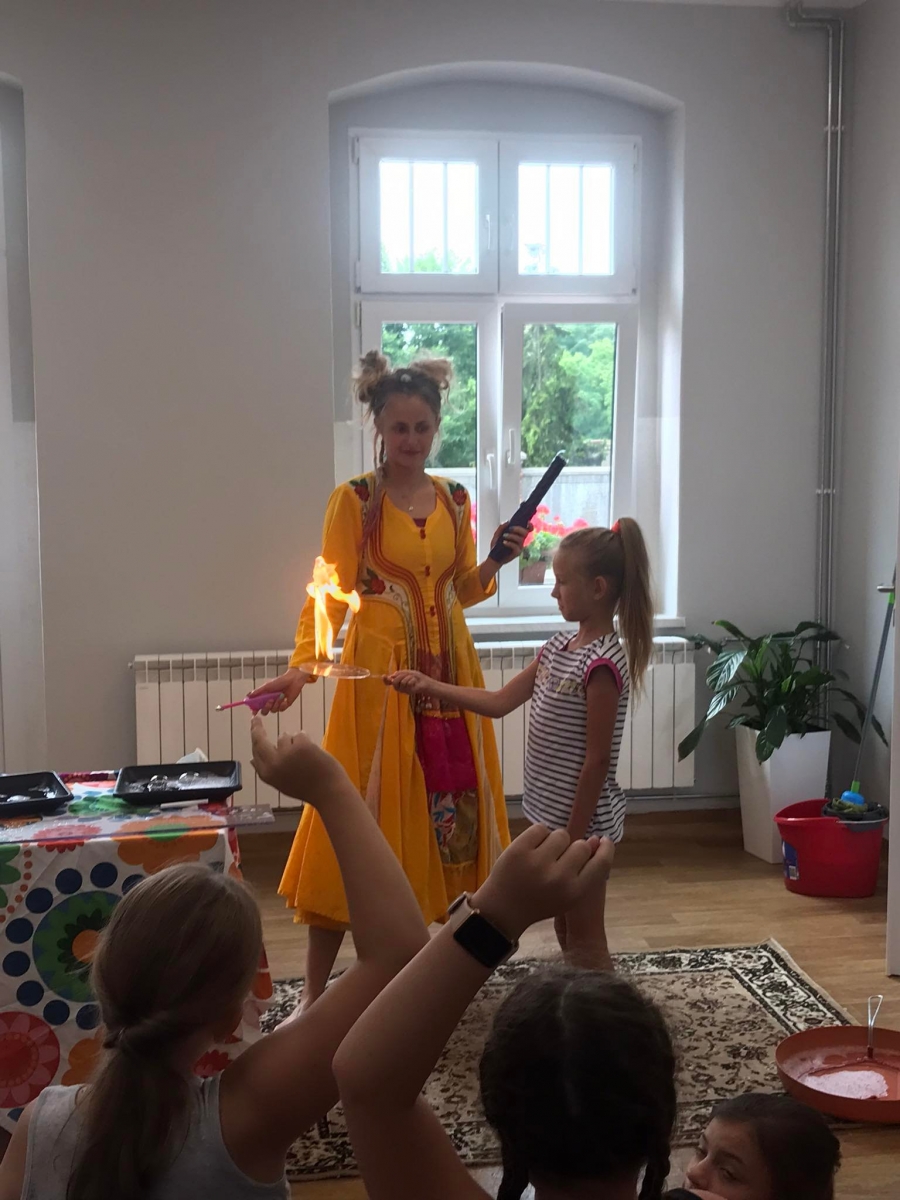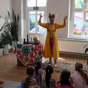 W poniedziałek 17 lipca w kobylińskiej Bibliotece przywitała nas znajoma Dorota Jagodzińska DJ – eventy, warsztaty, animacje. Mieliśmy przyjemność uczestniczyć w bańkowych warsztatach. Wspólnie z Dorotą tworzyliśmy różnego rodzaju bańki mydlane. Powstawały tradycyjne bańki, które każdy z nas zna, ale i takie, które miały w środku dym. Największą furorę wywołały płonące bańki mydlane. Okazało się, że wśród nas jest wielu zdolnych, młodych animatorów kultury.
