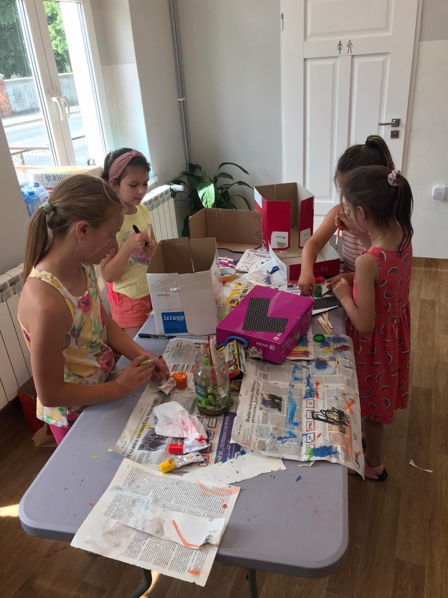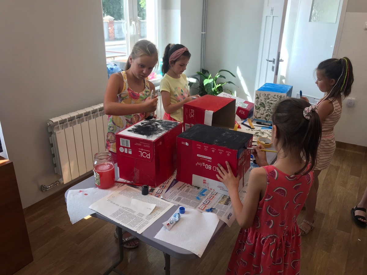 Plan uzgodniony, zatem… ruszyła budowa! Dzieci niezwykle kreatywnie pracowały nad tworzeniem miasteczka. Jeden pomysł rodził kolejny, co wpłynęło na świetną współpracę wśród uczestników. Po kilku pracowitych godzinach efekty przerosły nasze oczekiwania!
