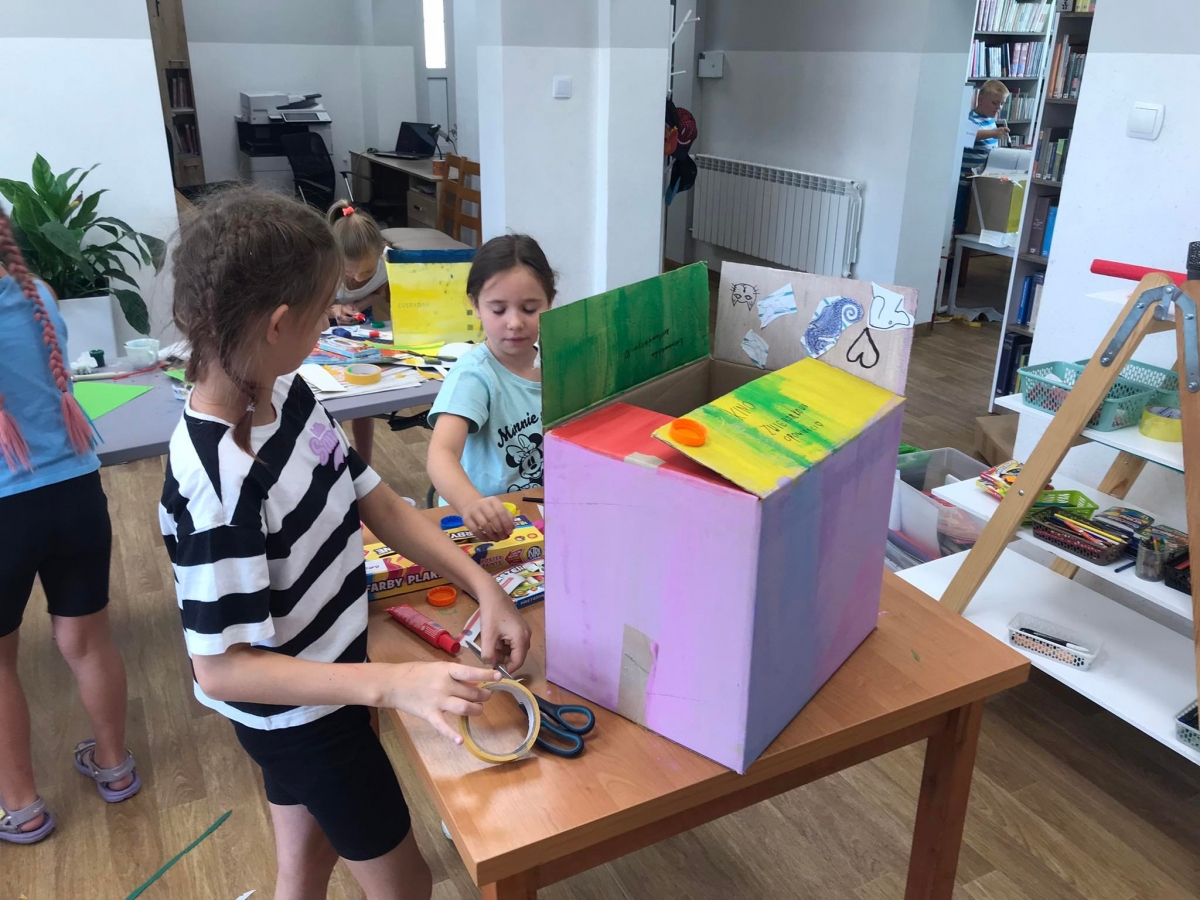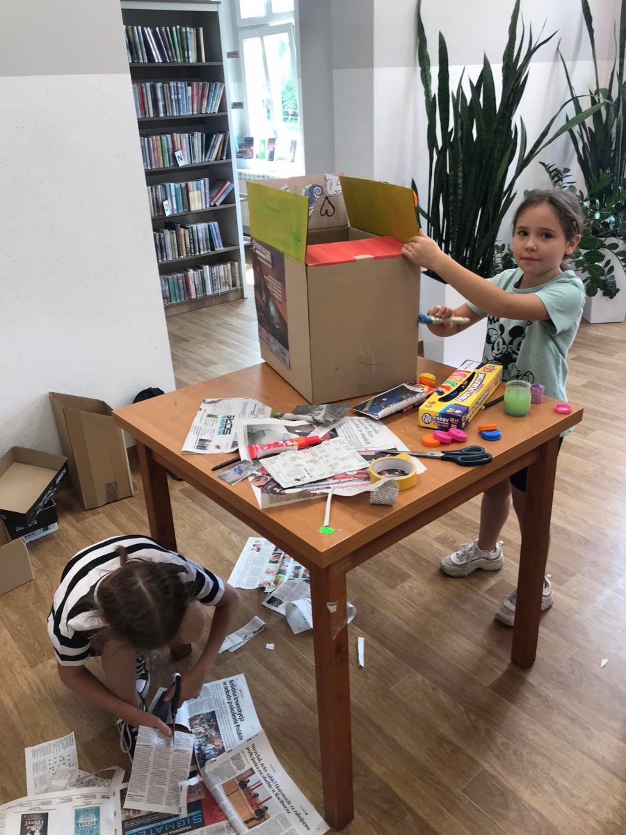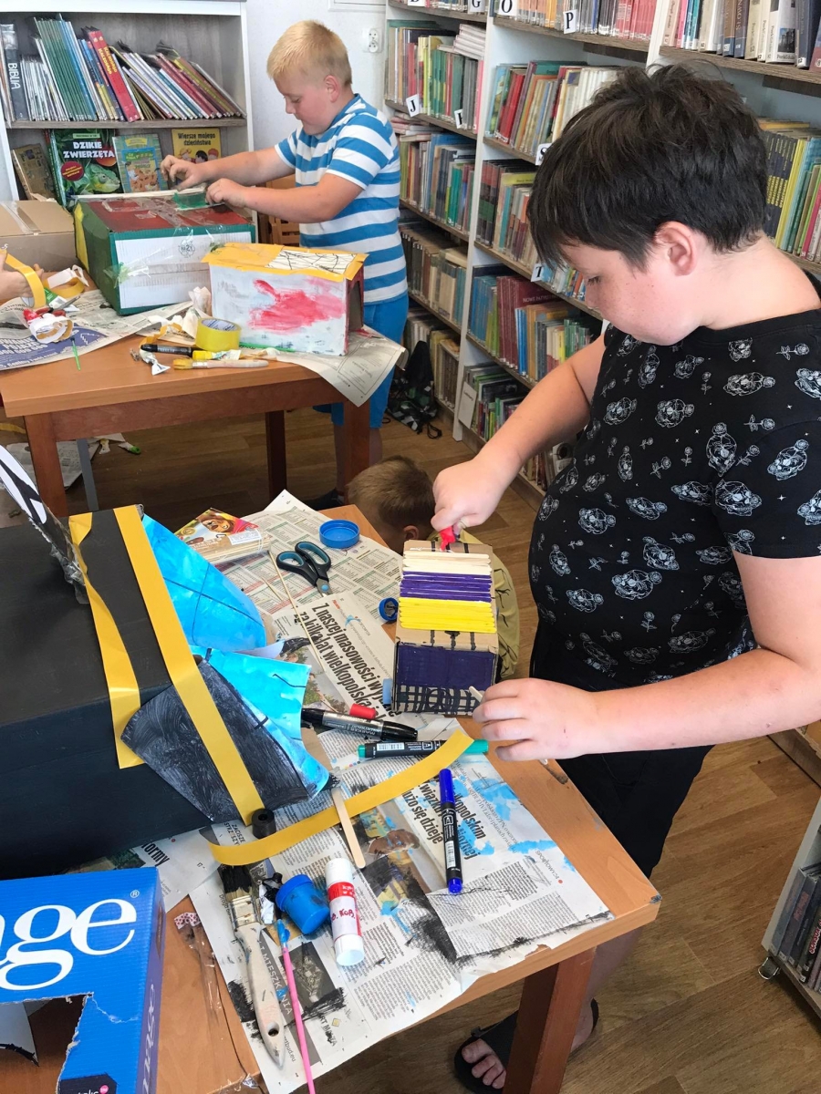 Za nami kolejny dzień pełen wrażeń podczas zajęć w ramach „Wakacji z Biblioteką”, pod nazwą „Budownicza środa”.