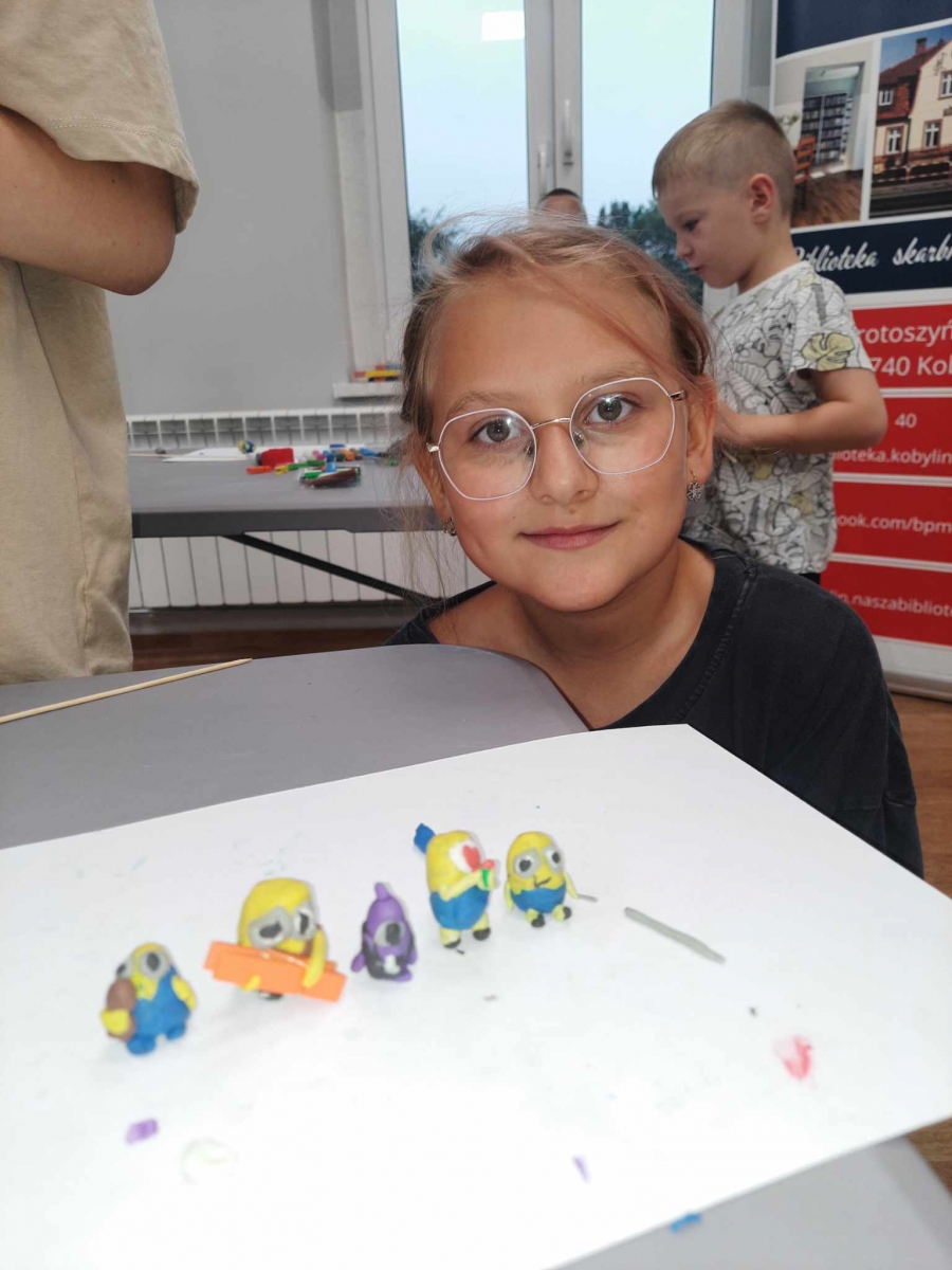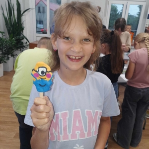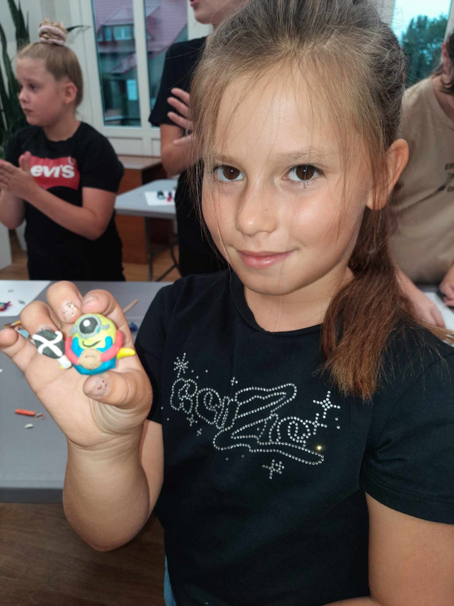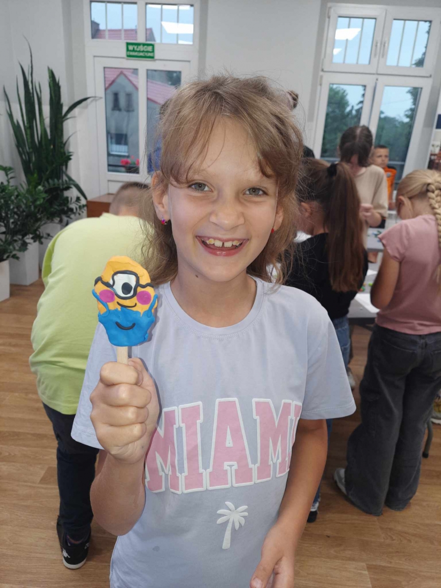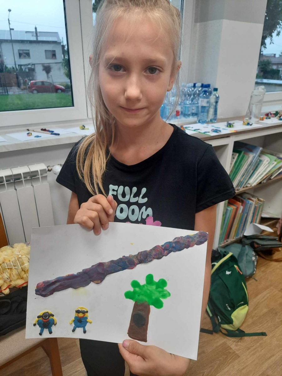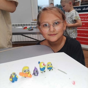 Zajęcia rozpoczęliśmy od lepienia z plasteliny miniaturowych… Minionków! Kreatywność uczestników przerosła nasze oczekiwania! Powstały Minionki grające na gitarze, Minionki a’la Iga Świątek z rakietą tenisową w ręce oraz z brązowym medalem… Minionki w postaci żołnierzy i… wiele innych. Zachęcamy do obejrzenia galerii zdjęć i zapoznania się z niezwykłymi pomysłami dzieci.