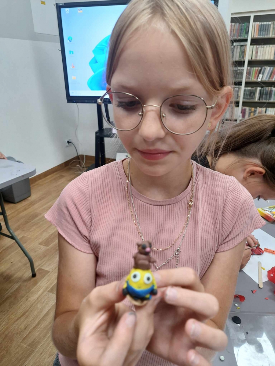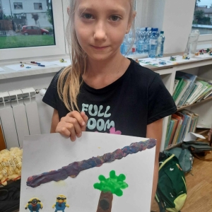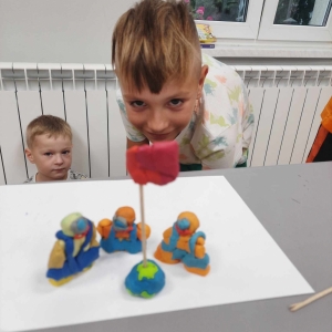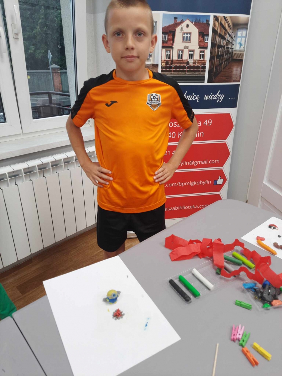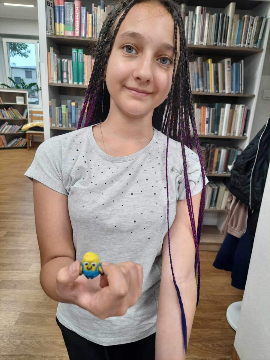 Zajęcia rozpoczęliśmy od lepienia z plasteliny miniaturowych… Minionków! Kreatywność uczestników przerosła nasze oczekiwania! Powstały Minionki grające na gitarze, Minionki a’la Iga Świątek z rakietą tenisową w ręce oraz z brązowym medalem… Minionki w postaci żołnierzy i… wiele innych. Zachęcamy do obejrzenia galerii zdjęć i zapoznania się z niezwykłymi pomysłami dzieci.