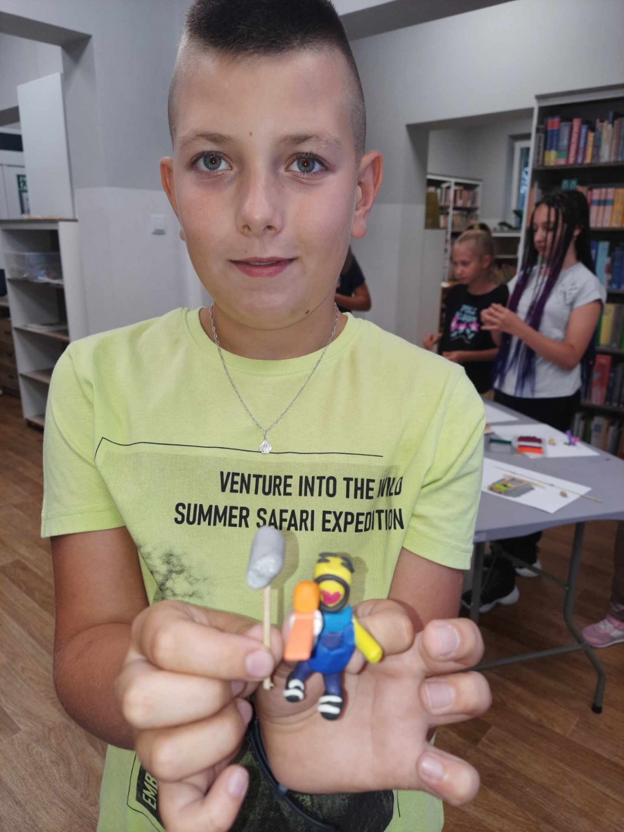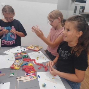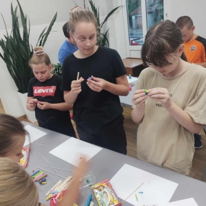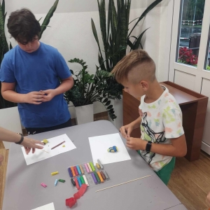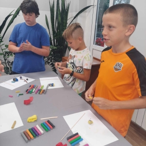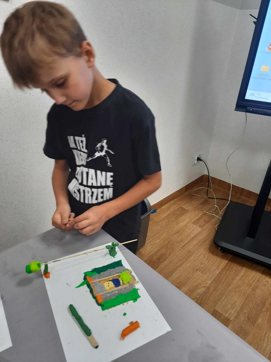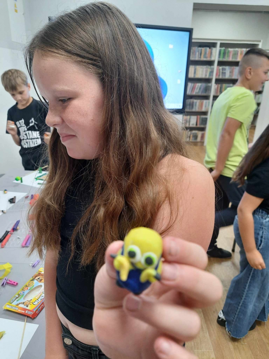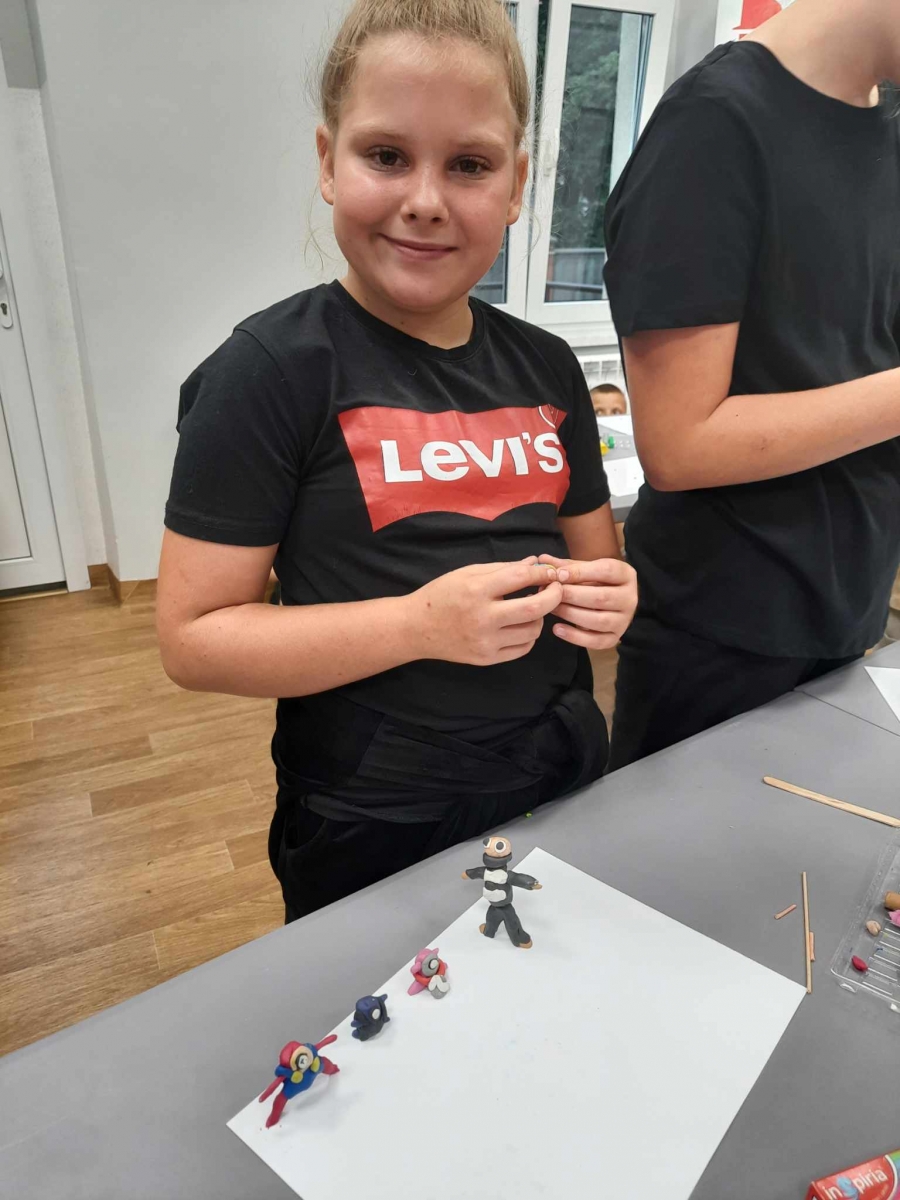Zajęcia rozpoczęliśmy od lepienia z plasteliny miniaturowych… Minionków! Kreatywność uczestników przerosła nasze oczekiwania! Powstały Minionki grające na gitarze, Minionki a’la Iga Świątek z rakietą tenisową w ręce oraz z brązowym medalem… Minionki w postaci żołnierzy i… wiele innych. Zachęcamy do obejrzenia galerii zdjęć i zapoznania się z niezwykłymi pomysłami dzieci.