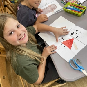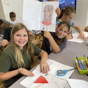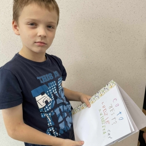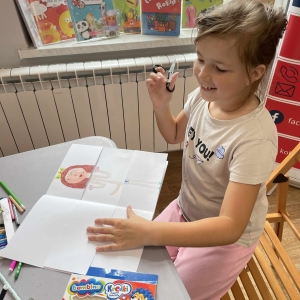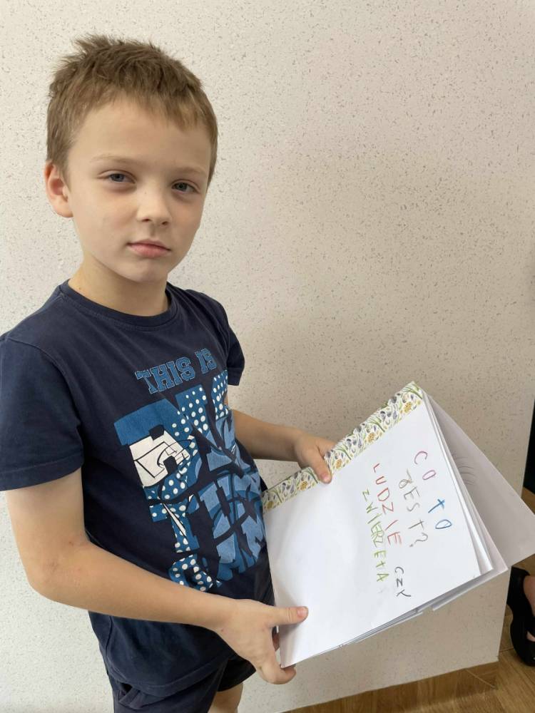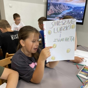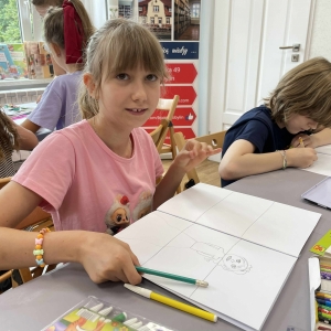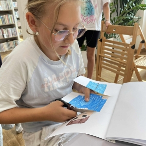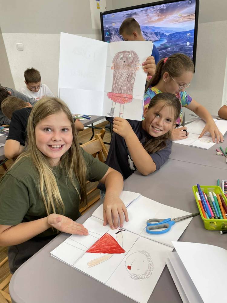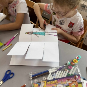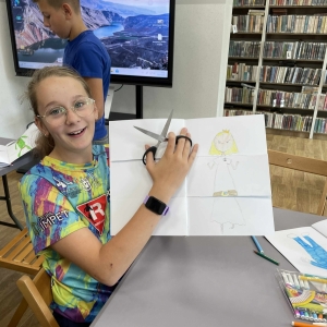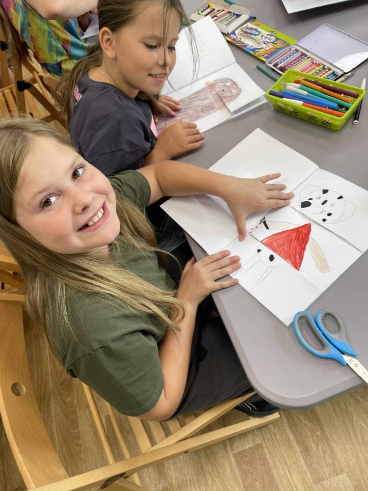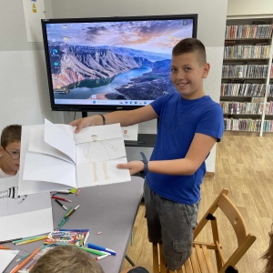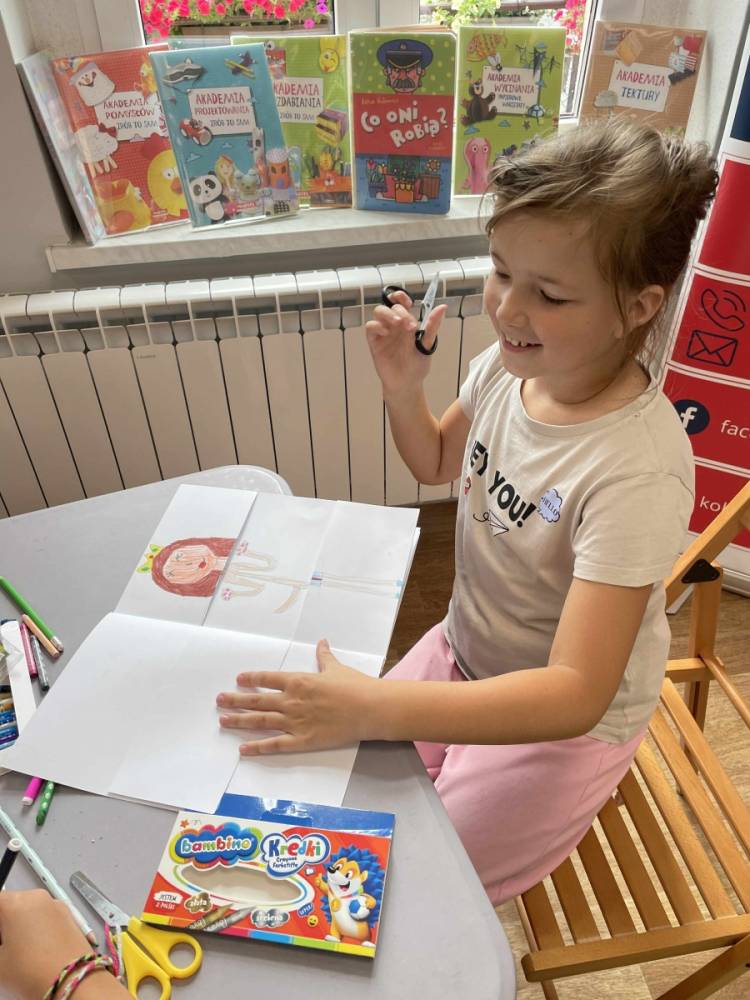 Jak na Wakacje z Biblioteką przystało, nie mogło zabraknąć tworzenia książek ! Inspiracją do tego zadania była pozycja Artura Gulewicza ,,Co oni robią?’’ . Książka wyjątkowa ponieważ zawiera ilustracje podzielone na trzy części, które gwarantują świetną zabawę. Mali autorzy dzieł nie nudzili się. Tworzyli wyjątkowe ilustracje- postacie, które w każdej chwili mogły stać się kimś innym. Oczywiście wszystkie prace można obejrzeć w galerii.