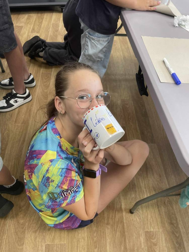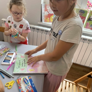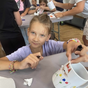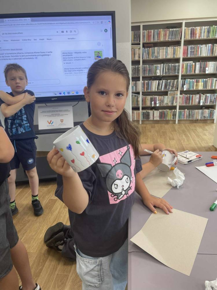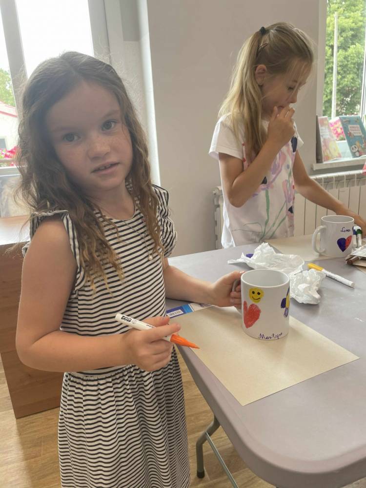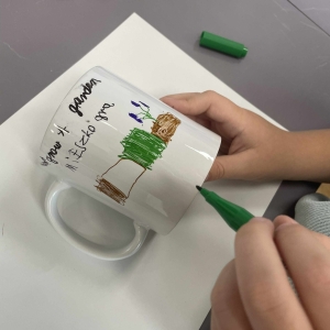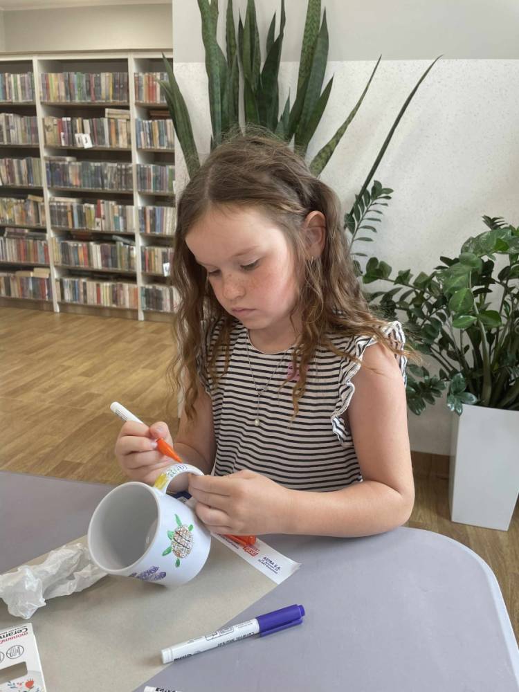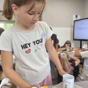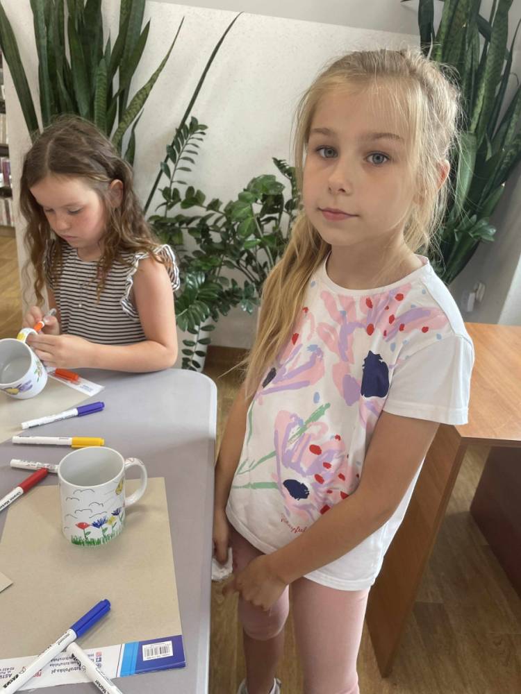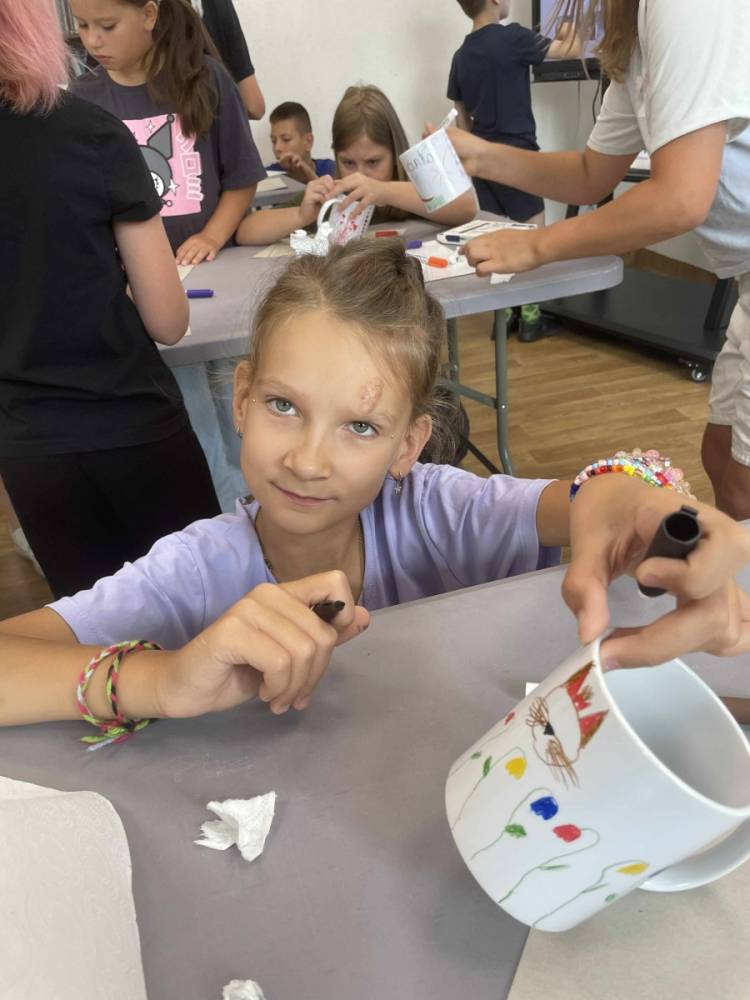 Na uczestników zajęć czekały zestawy plastyczne do tworzenia wyjątkowych kubków. Każdy otrzymał biały kubek ceramiczny i miał za zadanie spersonalizować go. Pomysły były przeróżne od małych rysunków po dedykacje dla rodziców i przyjaciół. Efekty prac można znaleźć w naszej galerii.