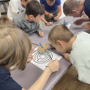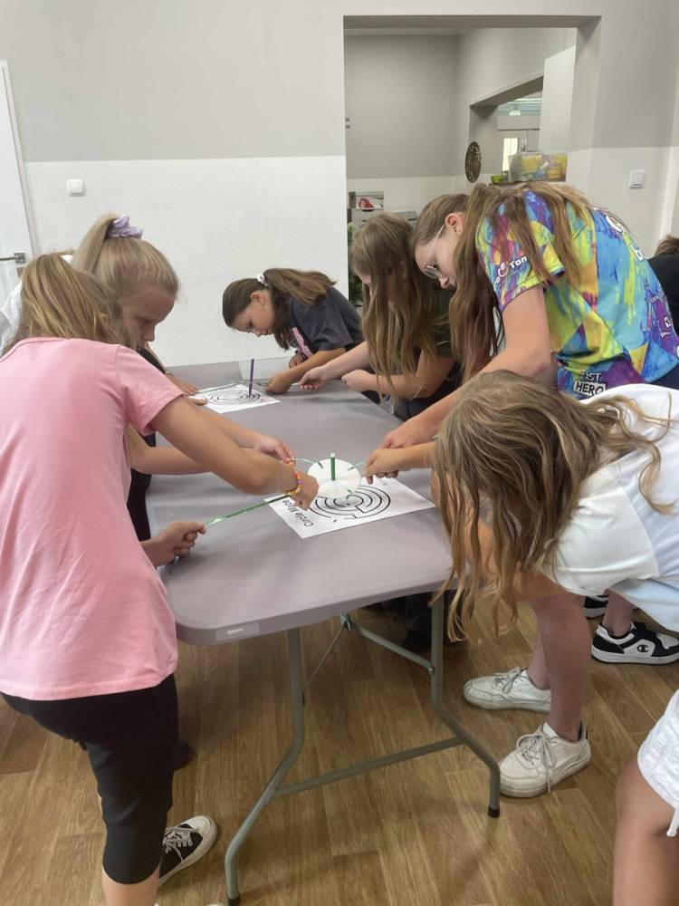 Kolejnym punktem zabaw tego dnia były gry zręcznościowe. Dzieci grały w labirynt, rzucały piłeczkami do celu. Śmiechu i radości było co niemiara.
