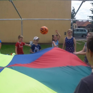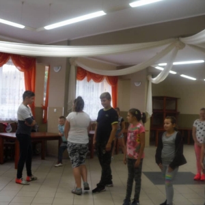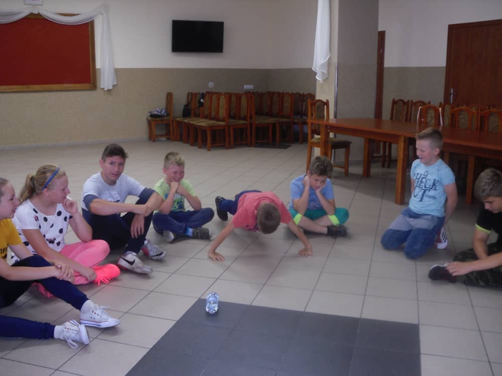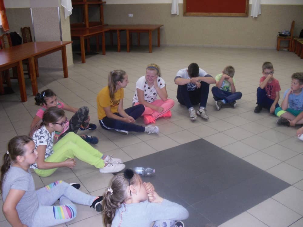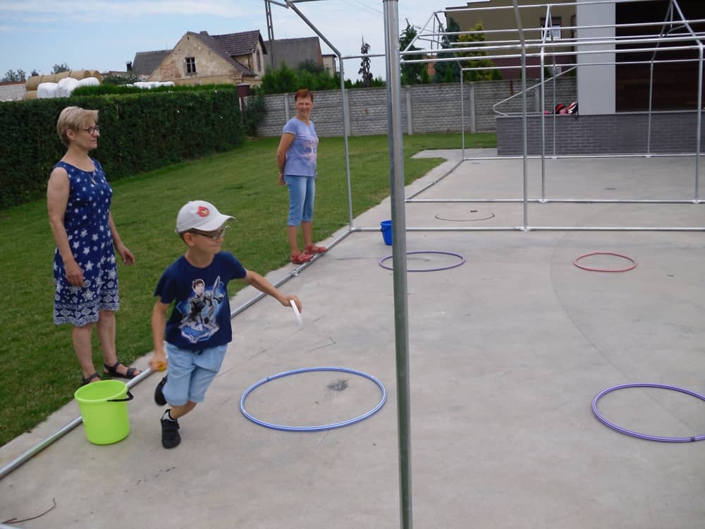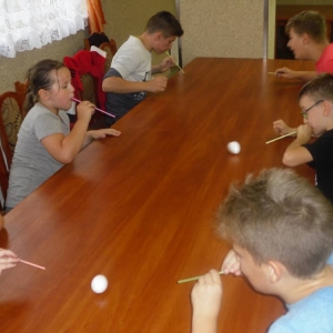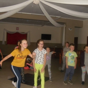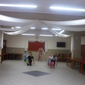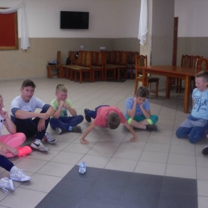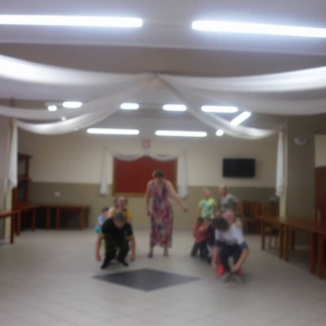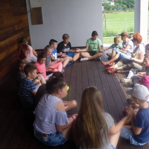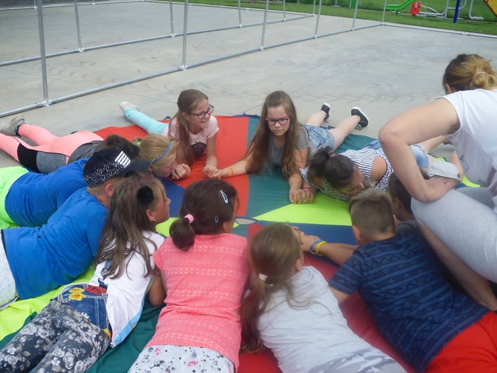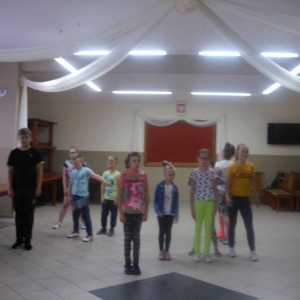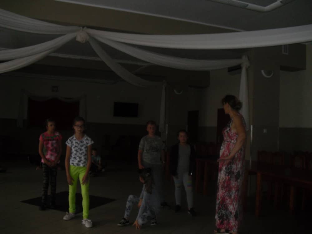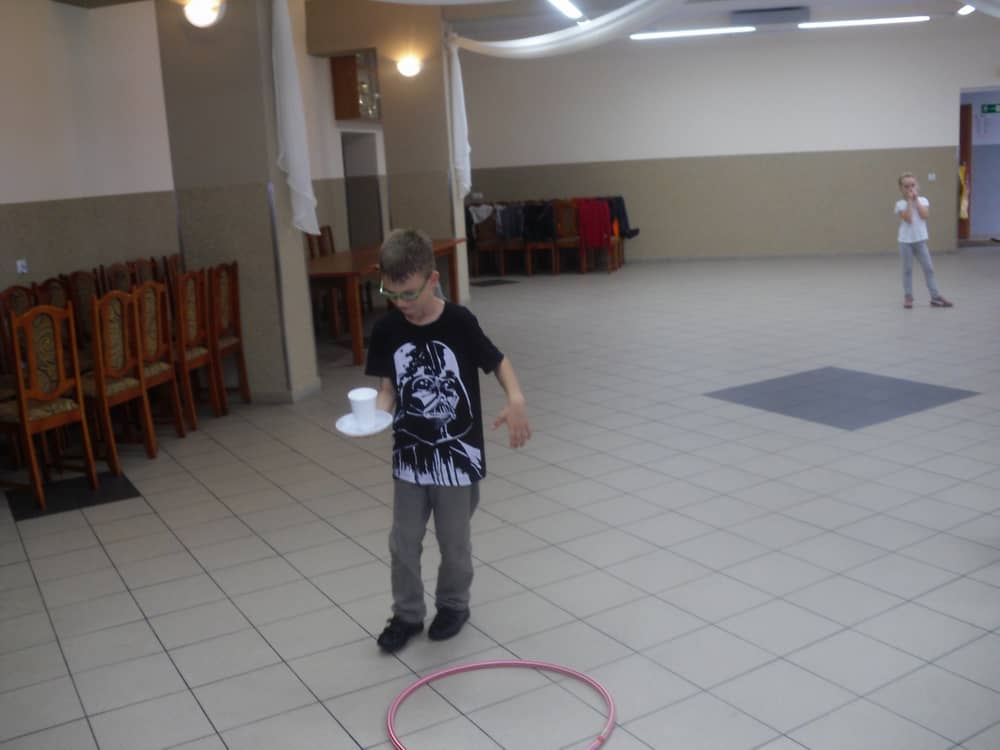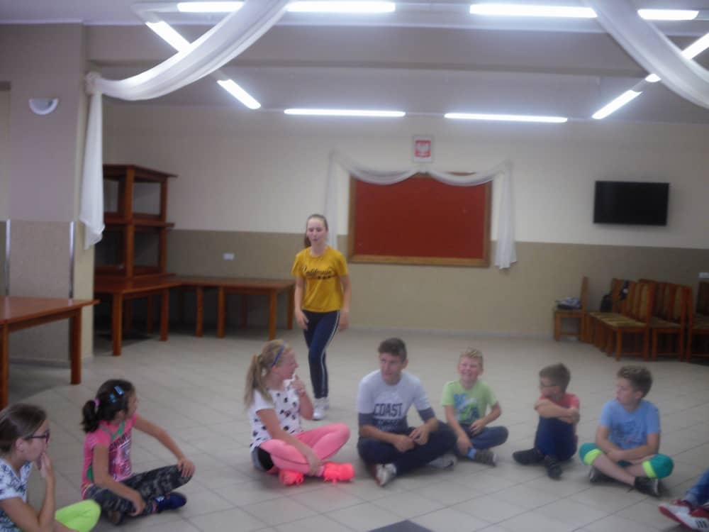 W kolejnych dwóch dniach pogoda sprawiła nam psikusa, dlatego zajęcia odbywały się na sali wiejskiej w Łagiewnikach. Tu również dzieci brały udział w grach i zabawach sprawnościowych, a gościnnie pomagała w prowadzeniu zabaw Pani Justyna Küffner. Bardzo atrakcyjną okazała się zabawa wiewiórki w dziupli. W ciuciubabce z zawiązanymi oczami należało złapać jakąś osobę i odgadnąć kto to jest. Podczas zabawy w pytanie czy wyzwanie większość uczestników wybierała pytanie. Dużą trudność, chociaż na wesoło, sprawiło przejście do mety jako stonoga.