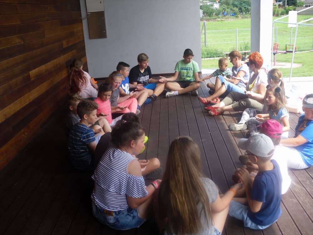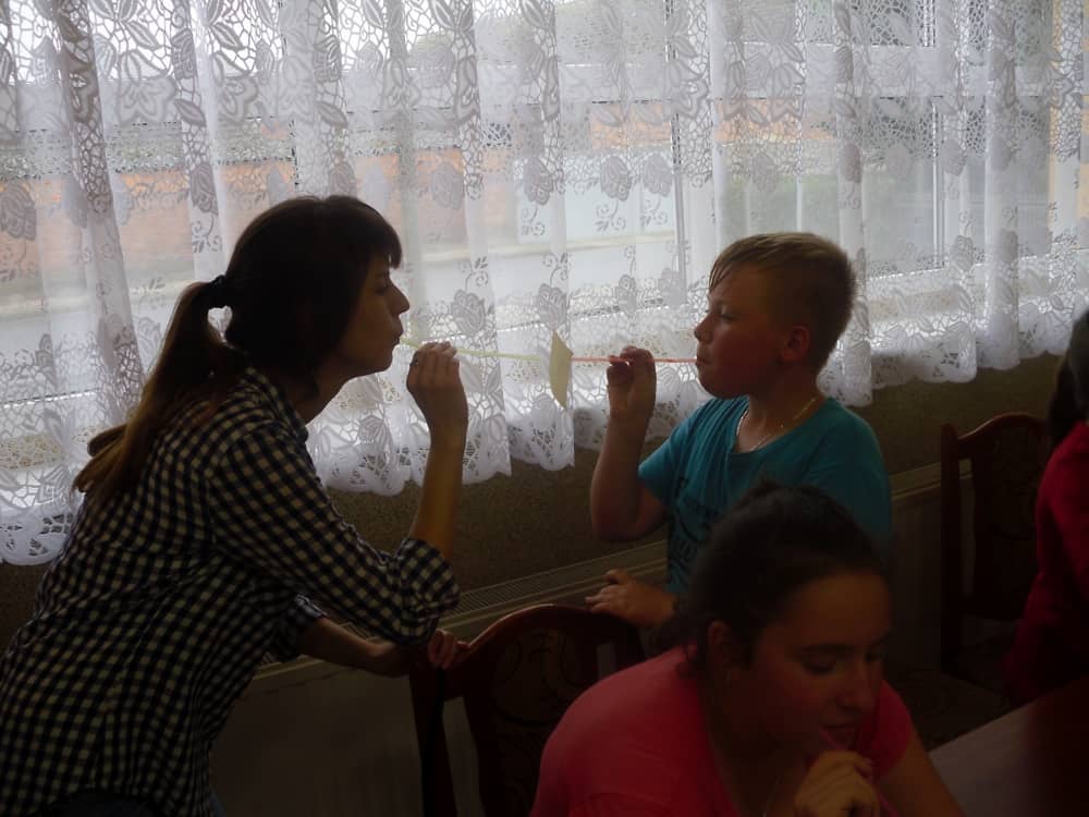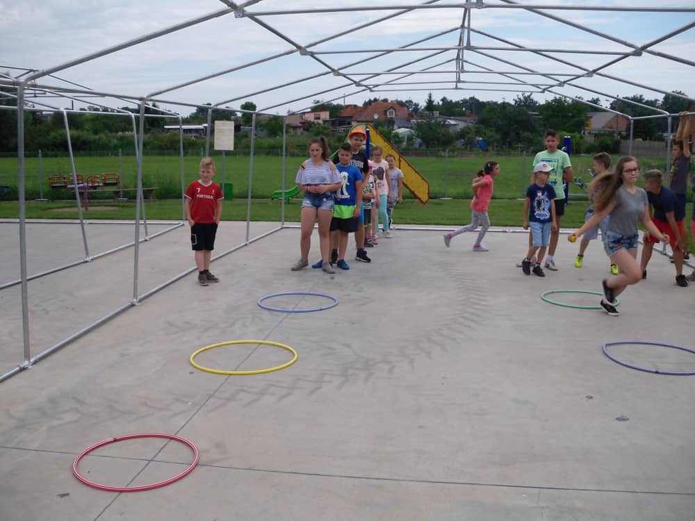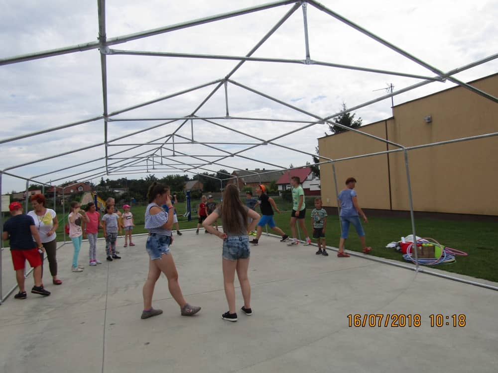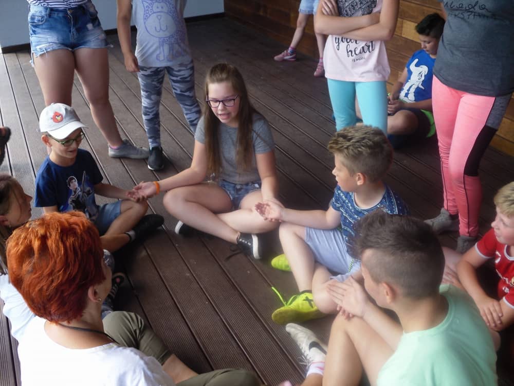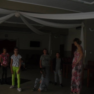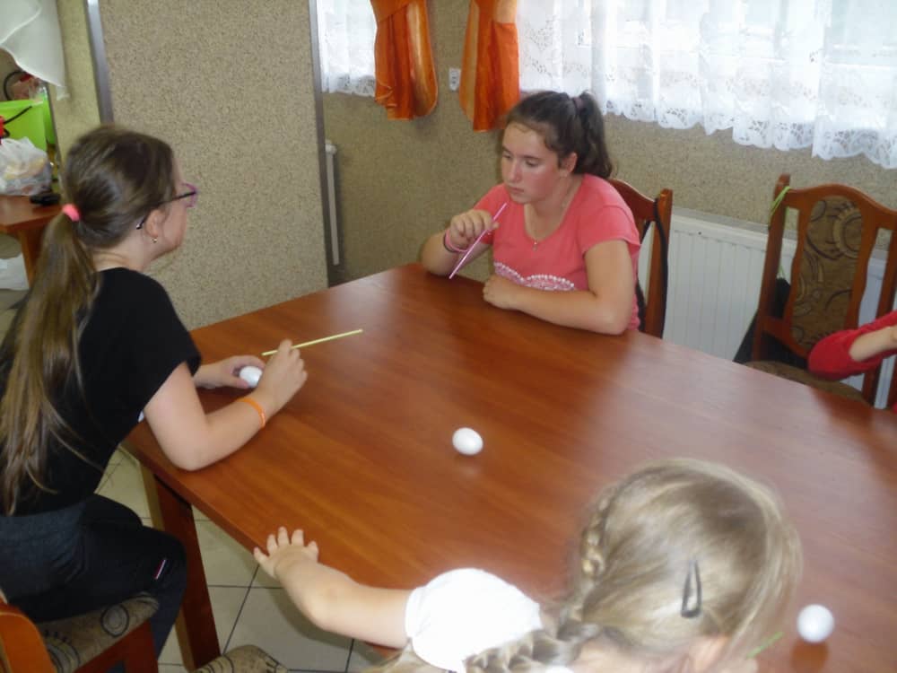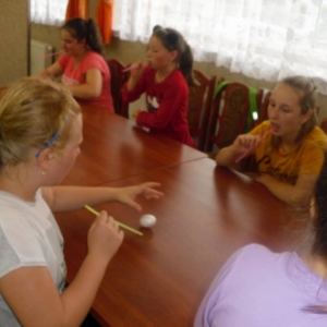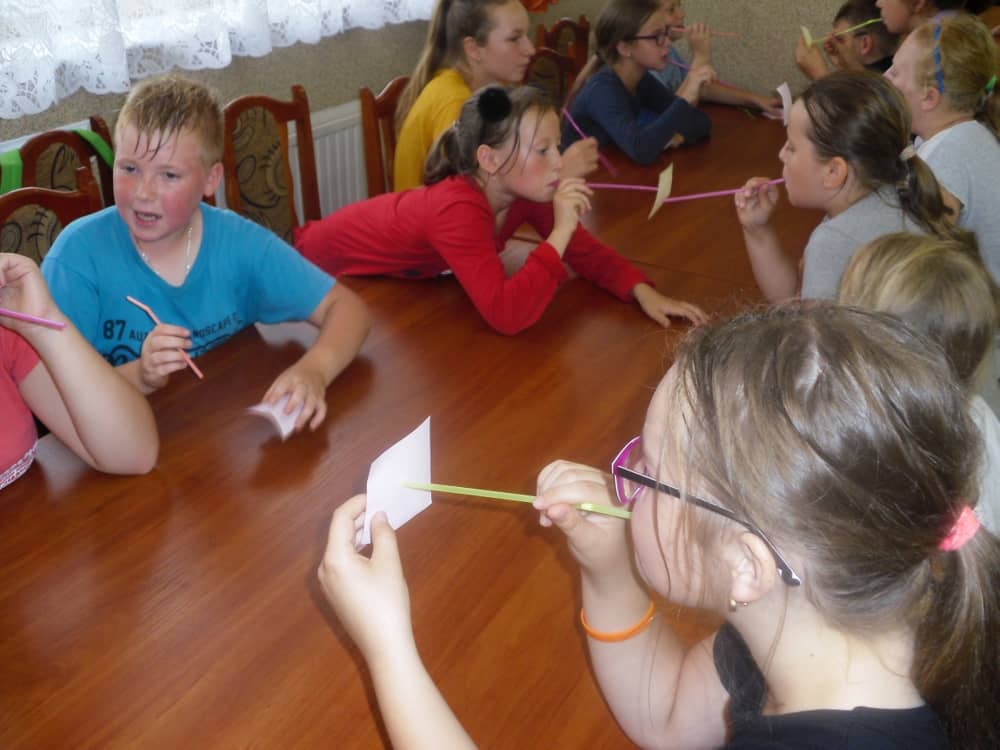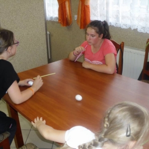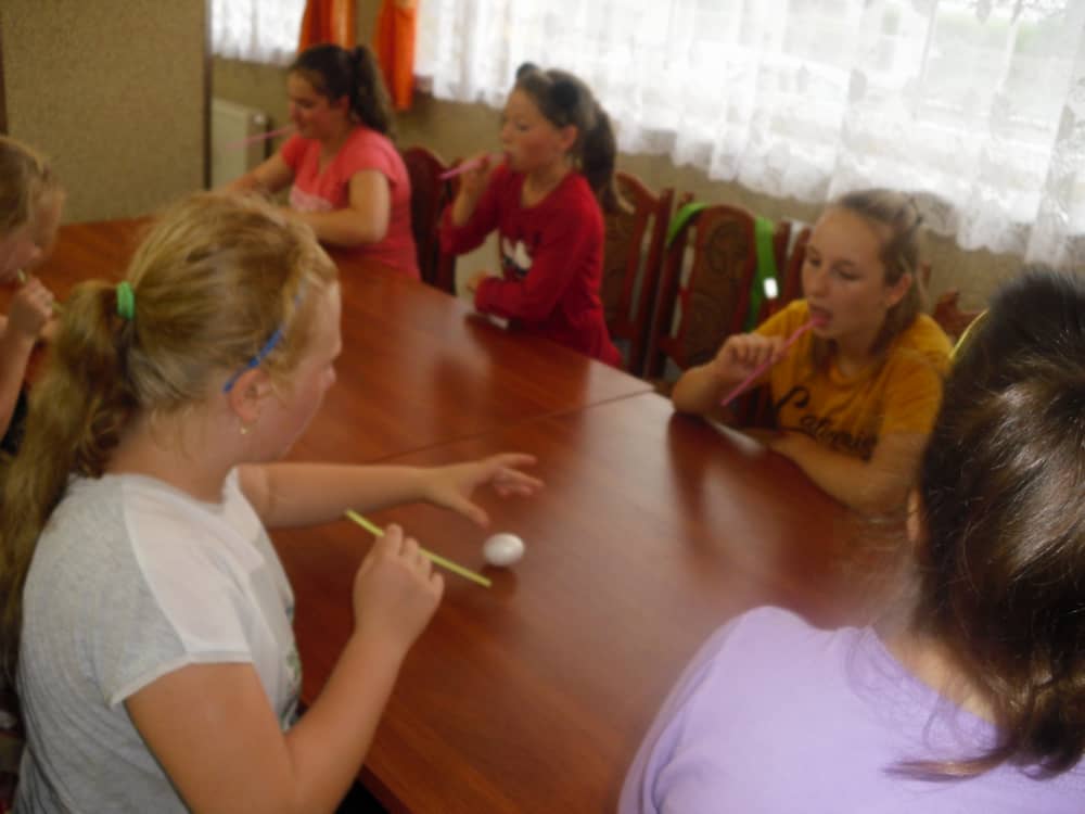 W kolejnych dwóch dniach pogoda sprawiła nam psikusa, dlatego zajęcia odbywały się na sali wiejskiej w Łagiewnikach. Tu również dzieci brały udział w grach i zabawach sprawnościowych, a gościnnie pomagała w prowadzeniu zabaw Pani Justyna Küffner. Bardzo atrakcyjną okazała się zabawa wiewiórki w dziupli. W ciuciubabce z zawiązanymi oczami należało złapać jakąś osobę i odgadnąć kto to jest. Podczas zabawy w pytanie czy wyzwanie większość uczestników wybierała pytanie. Dużą trudność, chociaż na wesoło, sprawiło przejście do mety jako stonoga.