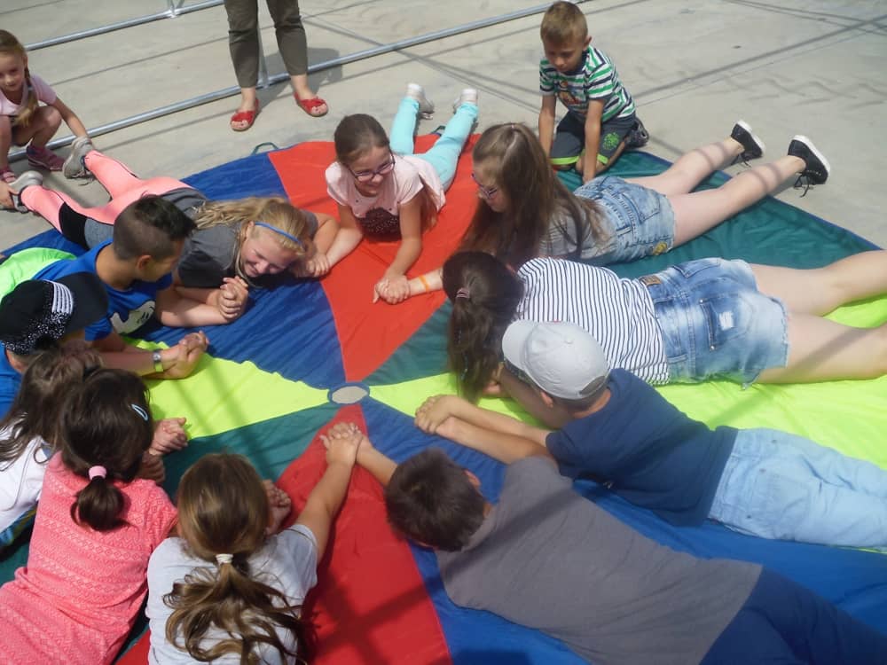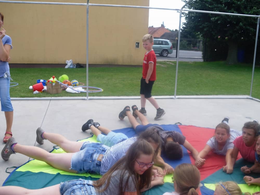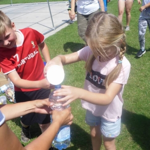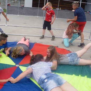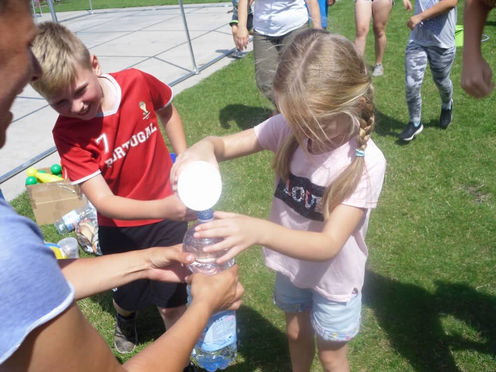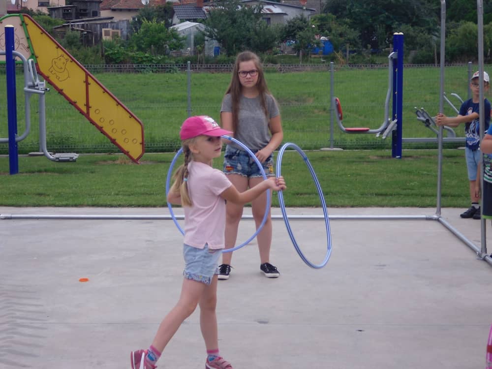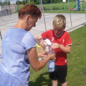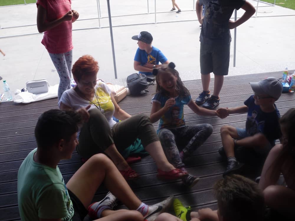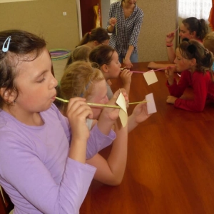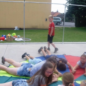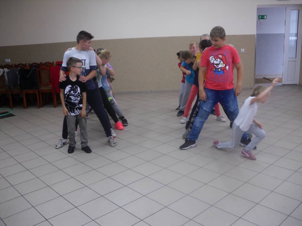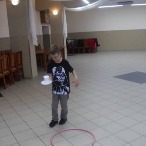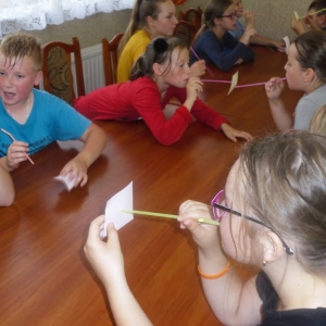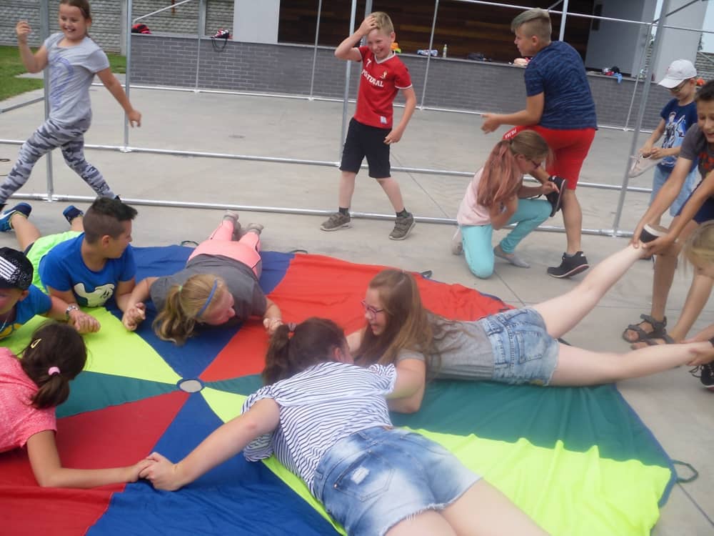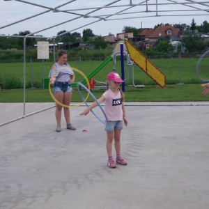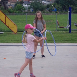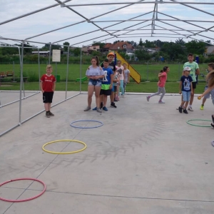 W ostatnim dniu zajęć dzieci grały w gumę. Nie zabrakło także wyścigów i zabaw z rywalizacją. Sporo trudności sprawił bieg kelnera podczas którego należało dojść do wyznaczonej linii, niosąc talerzyk, a na nim kubek. Podczas kulawego berka osoba klepnięta, trzymała się za dotknięte miejsce co utrudniało ucieczkę. Na koniec dzieci zagrały w koło fortuny, w którym trzeba było odgadnąć tytuł bajki. Po tak wyczerpujących zajęciach, każdy z uczestników pokrzepił się słodyczami.