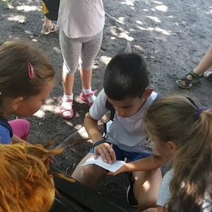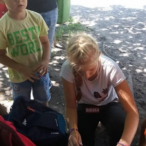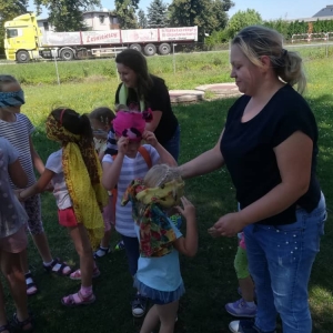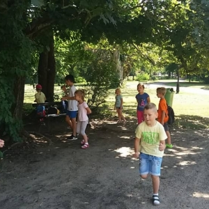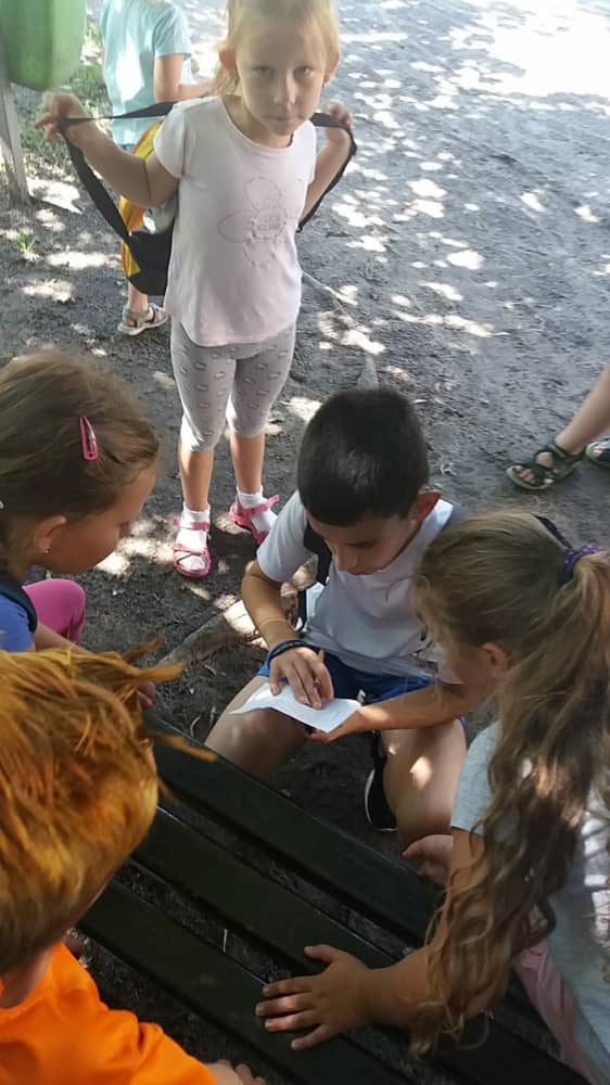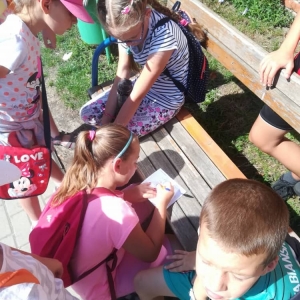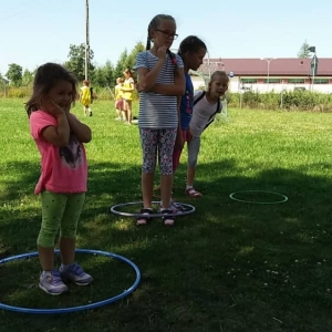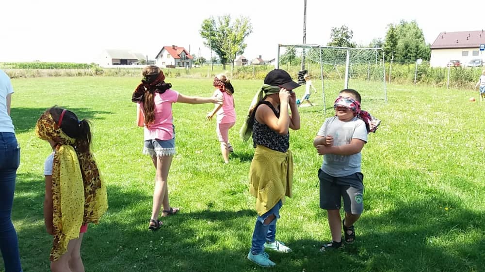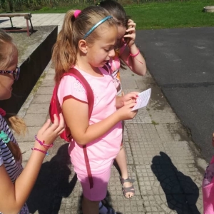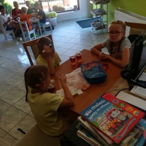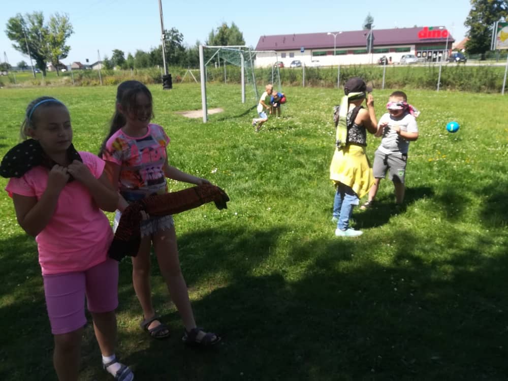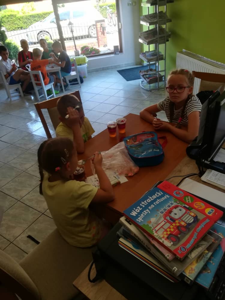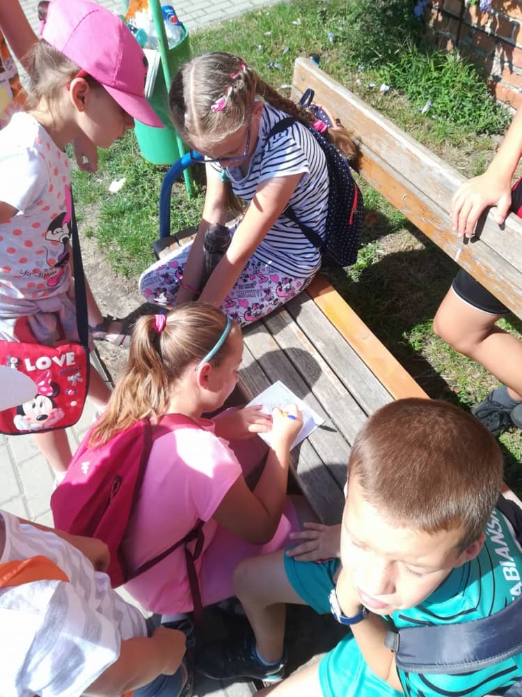W piątek odbyła się gra terenowa. Dzieci zostały podzielone na dwie drużyny. Jedna wyruszyła na teren smolickiego parku, druga na obszar Ochotniczej Straży Pożarnej. Zadaniem dzieci było odszukanie i rozwiązanie zagadek głównie dotyczących Smolic oraz gminy Kobylin. Jedna z zagadek brzmiała: Ułóżcie rymowankę o ,,Wakacjach z Biblioteką". Oto odpowiedzi: