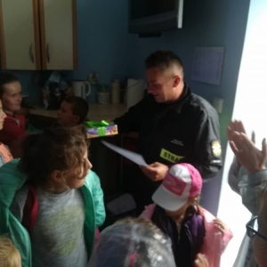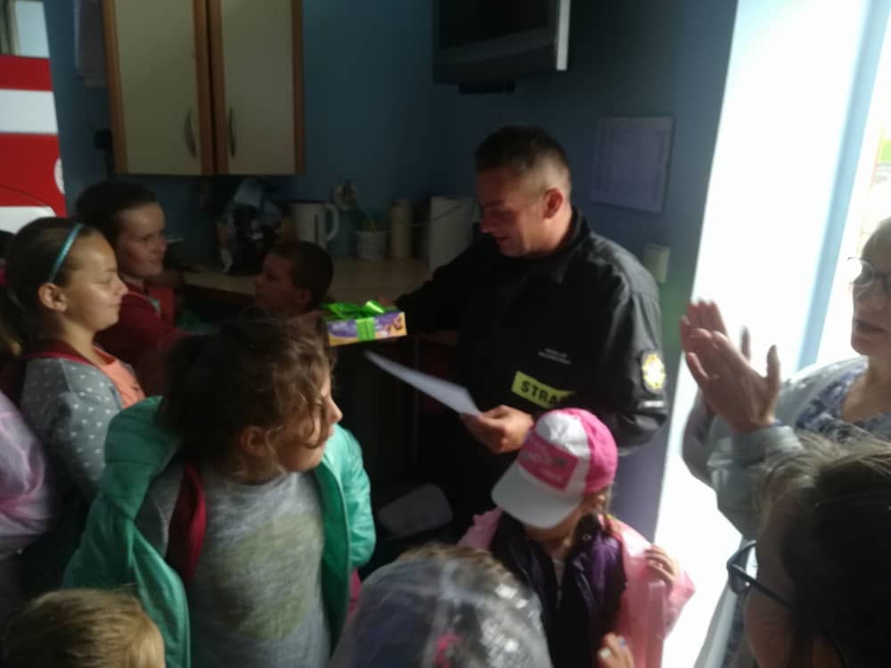 W trakcie kolejnego dnia ,,Wakacji z Biblioteką" odwiedziliśmy Ochotniczą Straż Pożarną w Smolicach. Prezes OSP Smolice, Pan Wiesław Skowroński opowiedział nam o niełatwej, często niebezpiecznej pracy strażaka. Pokazał umundurowanie strażackie i przedstawił je na jednej z uczestniczek zajęć. Mieliśmy okazję zobaczyć wyposażenie wozu strażackiego. Po wizycie udaliśmy się do lokalu biblioteki, gdzie odbyły się zajęcia plastyczne. Ich tematem były „Moje wymarzone wakacje”. Dzieci wykazały się kreatywnością wspólnie tworząc prace.