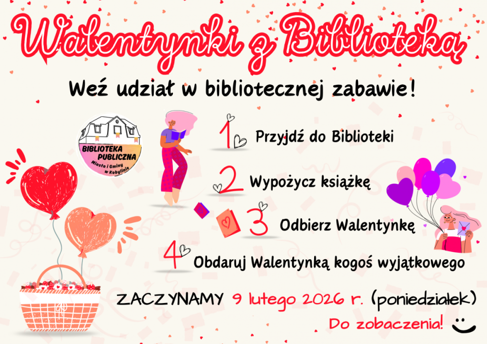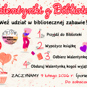 Od poniedziałku (9 lutego 2026 r.) zapraszamy do bibliotecznej zabawy, która potrwa do soboty (14 lutego 2026 r.).