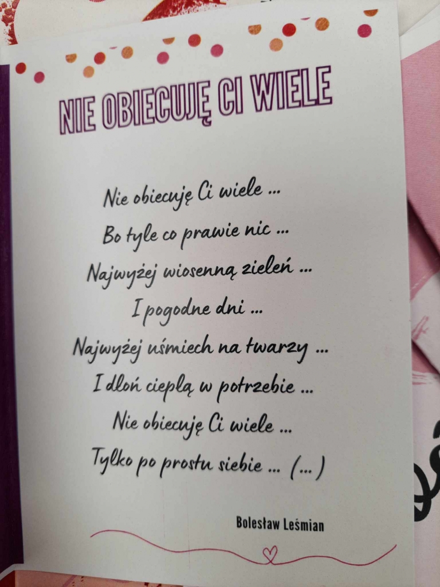 W środku Walentynek znajdowała się poezja Wisławy Szymborskiej, Bolesława Leśmiana, Czesława Miłosza, księdza Jana Twardowskiego, Adama Mickiewicza, Konstantego Ildefonsa Gałczyńskiego.