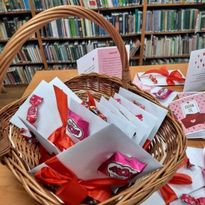 Bibliotekarki przygotowały własnoręcznie ponad 200 Walentynek. Do każdej wyjątkowej kartki dołączony był słodki cukierek.