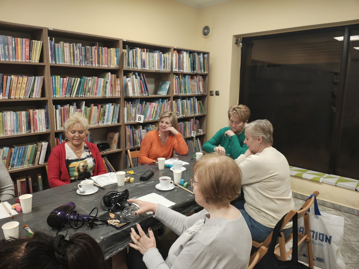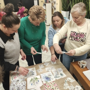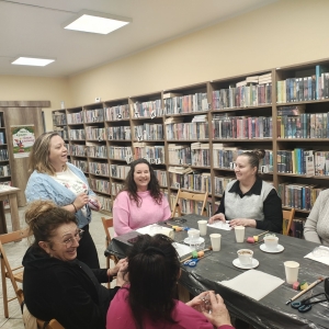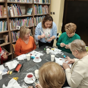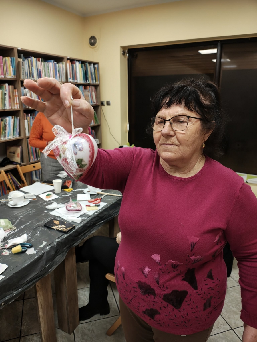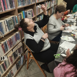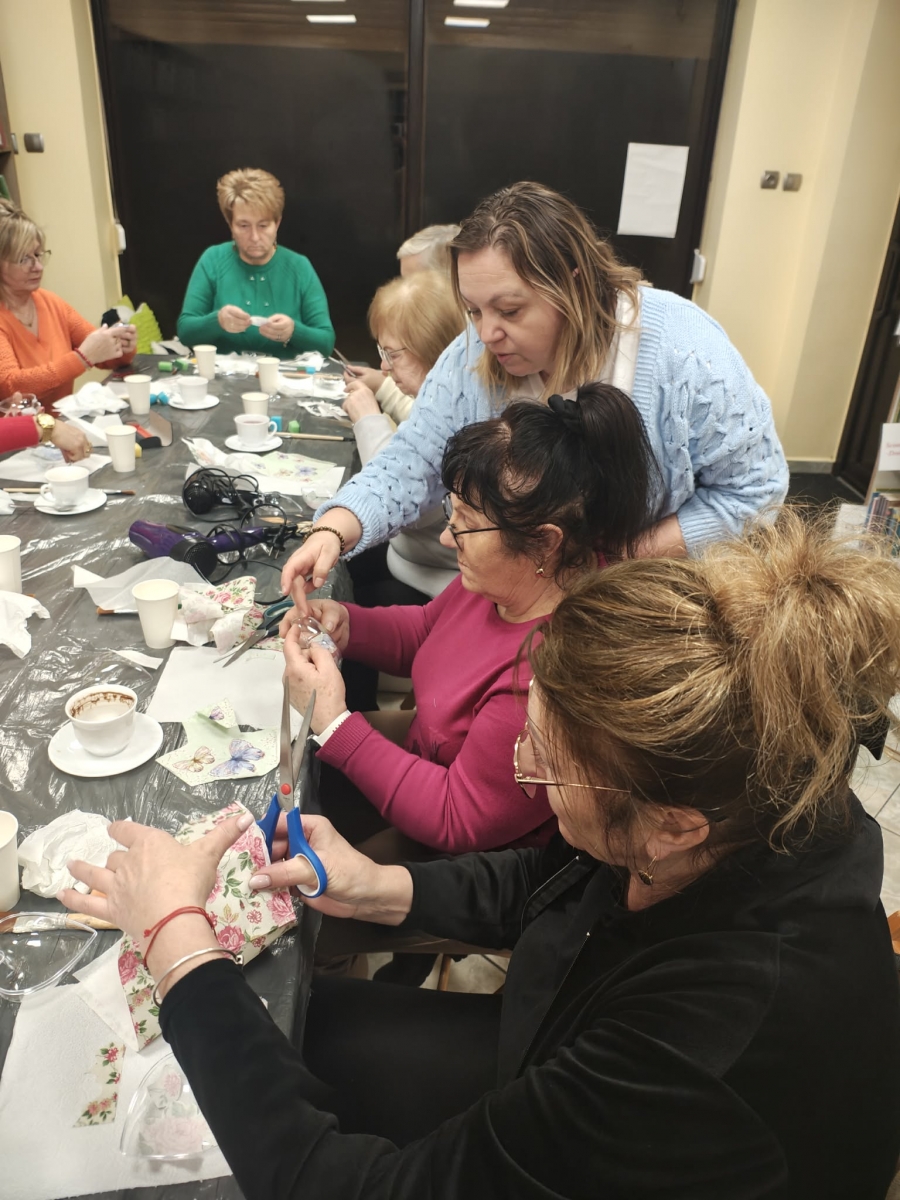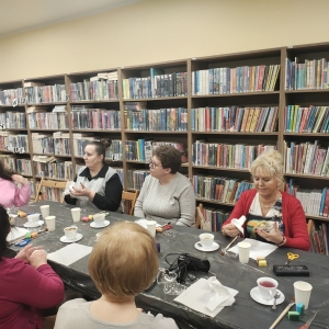 Galeria zawiera zdjęcia z warsztatów rękodzielniczych podczas których uczestniczki zajęć tworzyły walentynkowe serca metodą decoupage. Zdjęcia przedstawiają Panie podczas pracy: wycinających elementy, malujących serca, suszących swoje ozdoby.