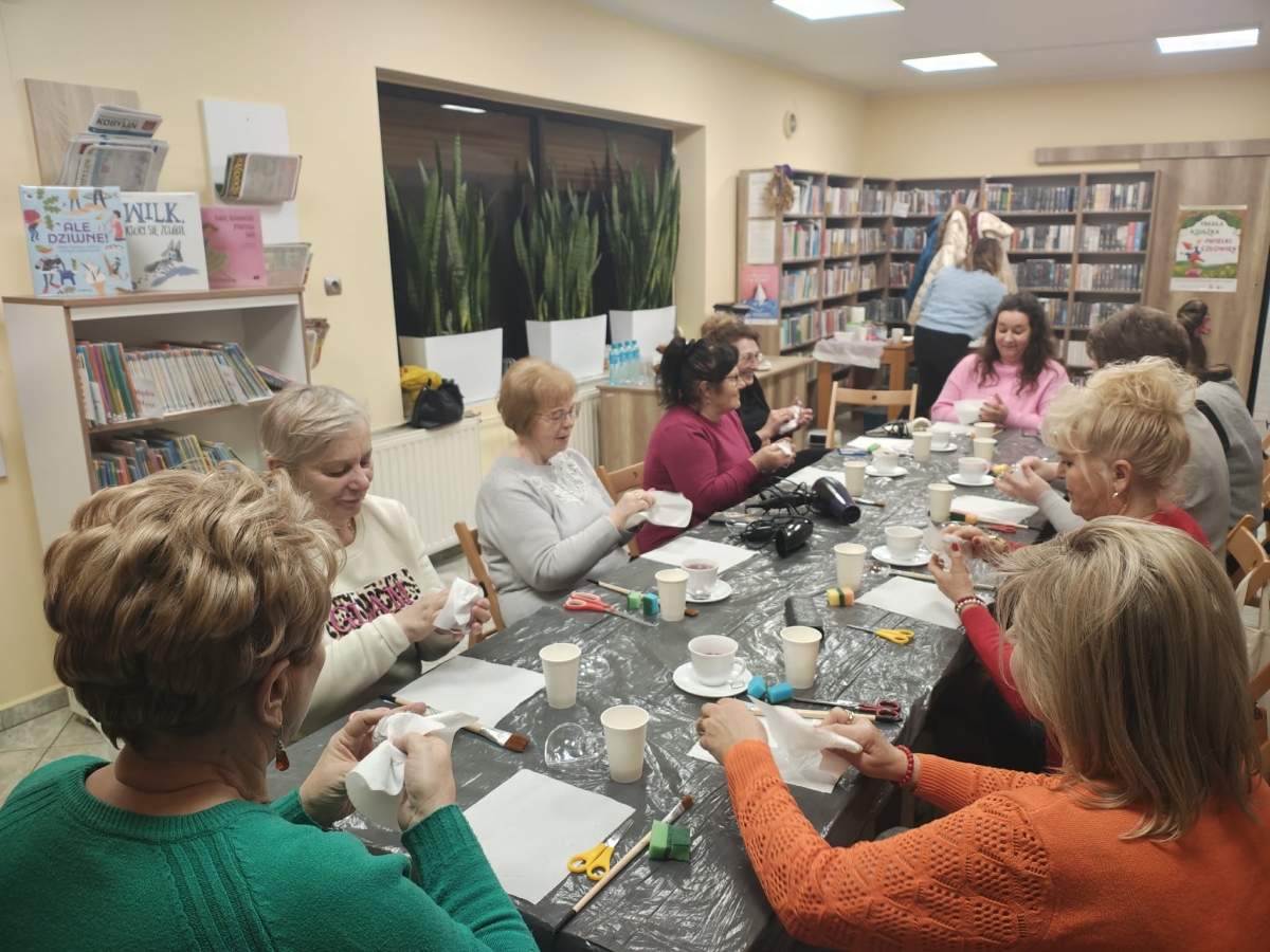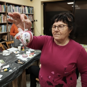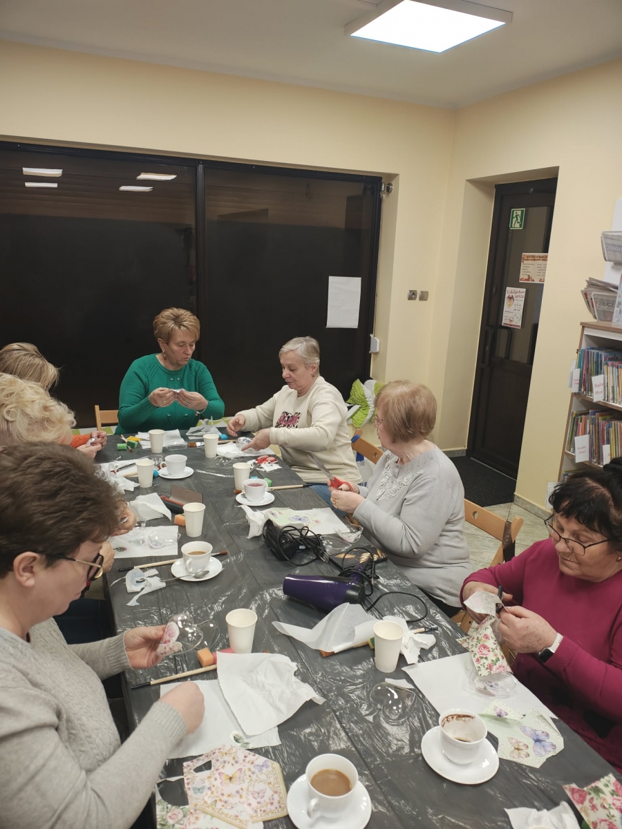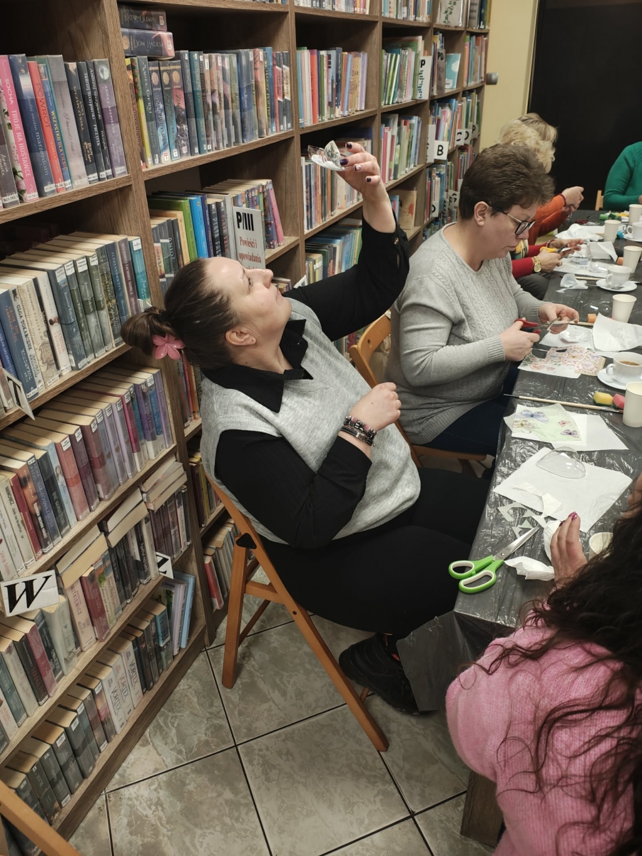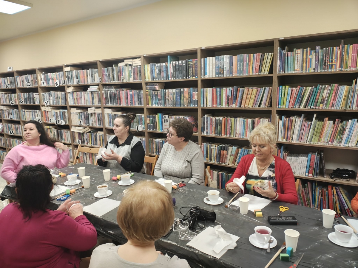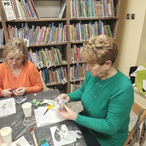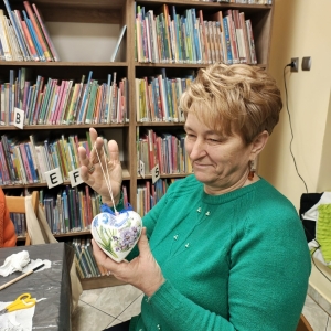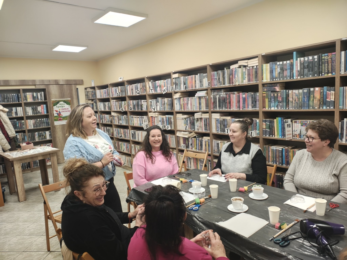 W piątek 30 stycznia w Filii Bibliotecznej odbyło się kolejne spotkanie z cyklu Rękodzieło w Bibliotece. Tym razem uczestniczki próbowały swoich sił w decoupage. Miłośniczki rękodzieła pod czujnym okiem prowadzącej Pani Eweliny Adler (Zdolne Rączki) tworzyły walentynkowe serca. Pani Ewelina to utalentowana lokalna rękodzielniczka, której pasją jest tworzenie unikatowych ozdób z drewna, plastiku, szkła. Wszystko ozdabia papierowymi serwetkami i farbami.