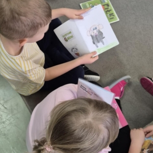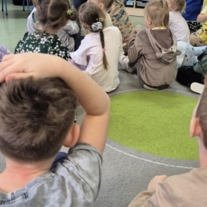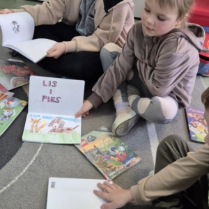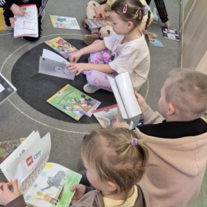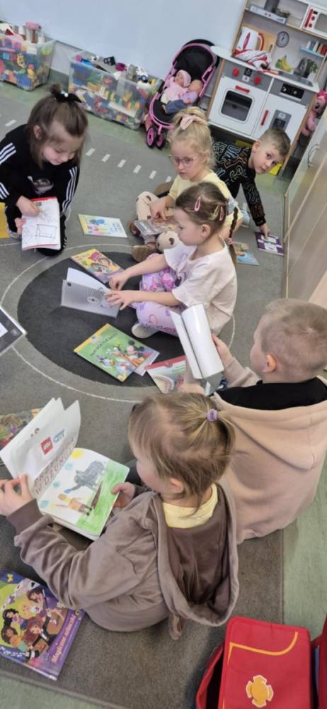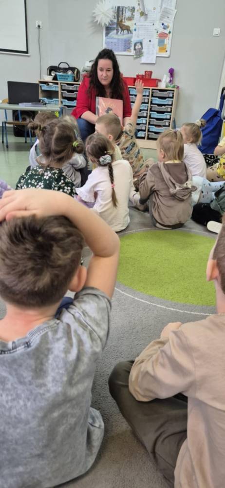 Dnia 5 lutego Aldona Kordus, która pracuje w Bibliotece Publicznej w Kobylinie, odwiedziła przedszkolaków z grupy Jeżyki.