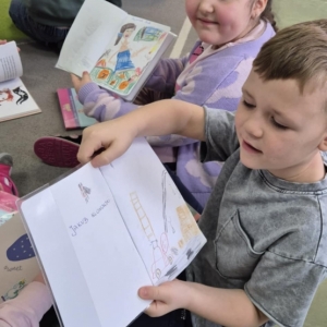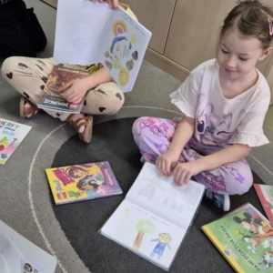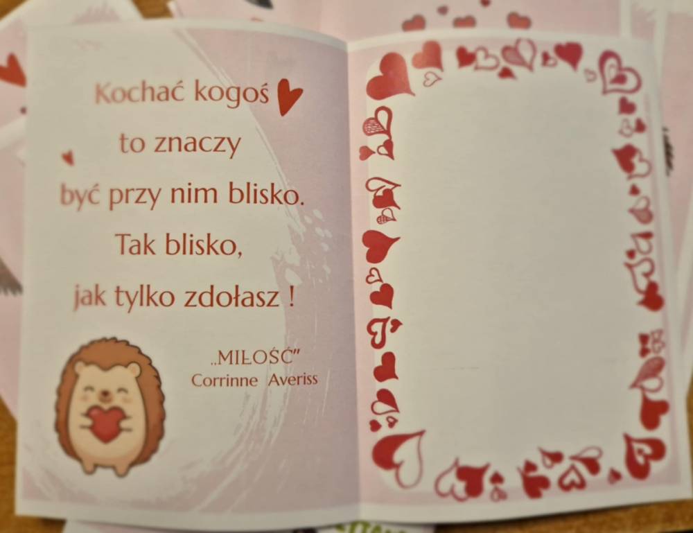 Dzieci otrzymały od bibliotekarki wyjątkowe kartki – walentynki. Będą mogli w nich narysować własny rysunek. Pięknymi kartkami obdarują 14 lutego najbliższe im osoby.