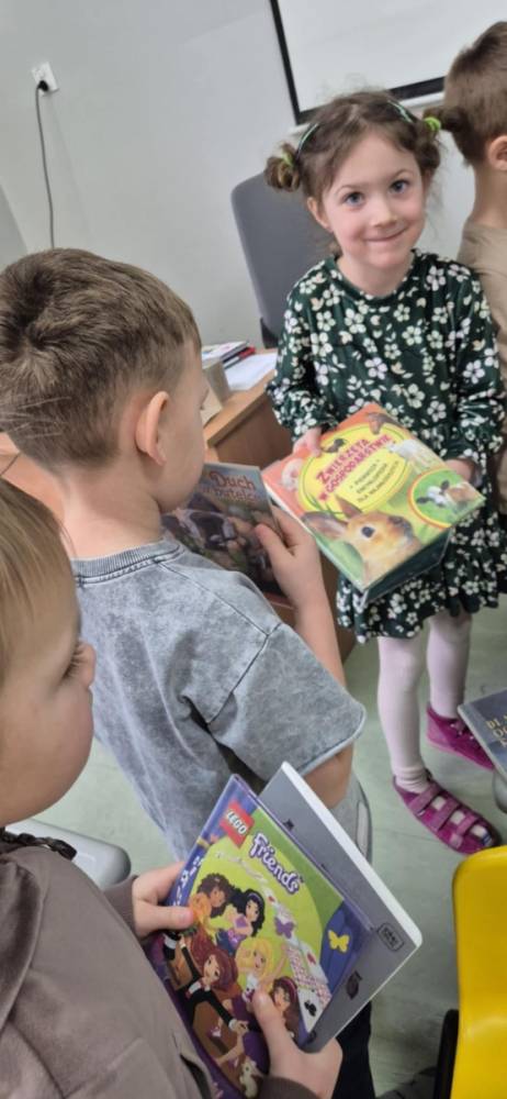 Spotkanie z przedszkolakami odbyło się w ramach realizacji projektu MAŁA KSIĄŻKA - WIELKI CZŁOWIEK. Dzieci po raz kolejny mogły oddać i wypożyczyć książki według własnych upodobań. Wybrane bajki zabiorą do domu, by wspólnie z rodzicami je przeczytać.