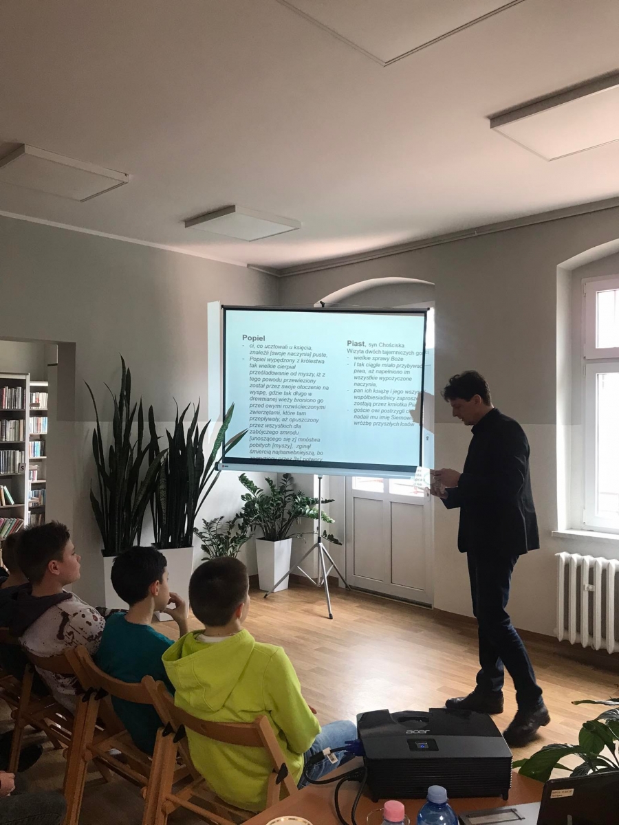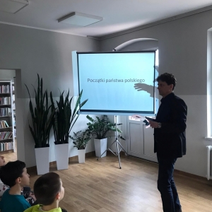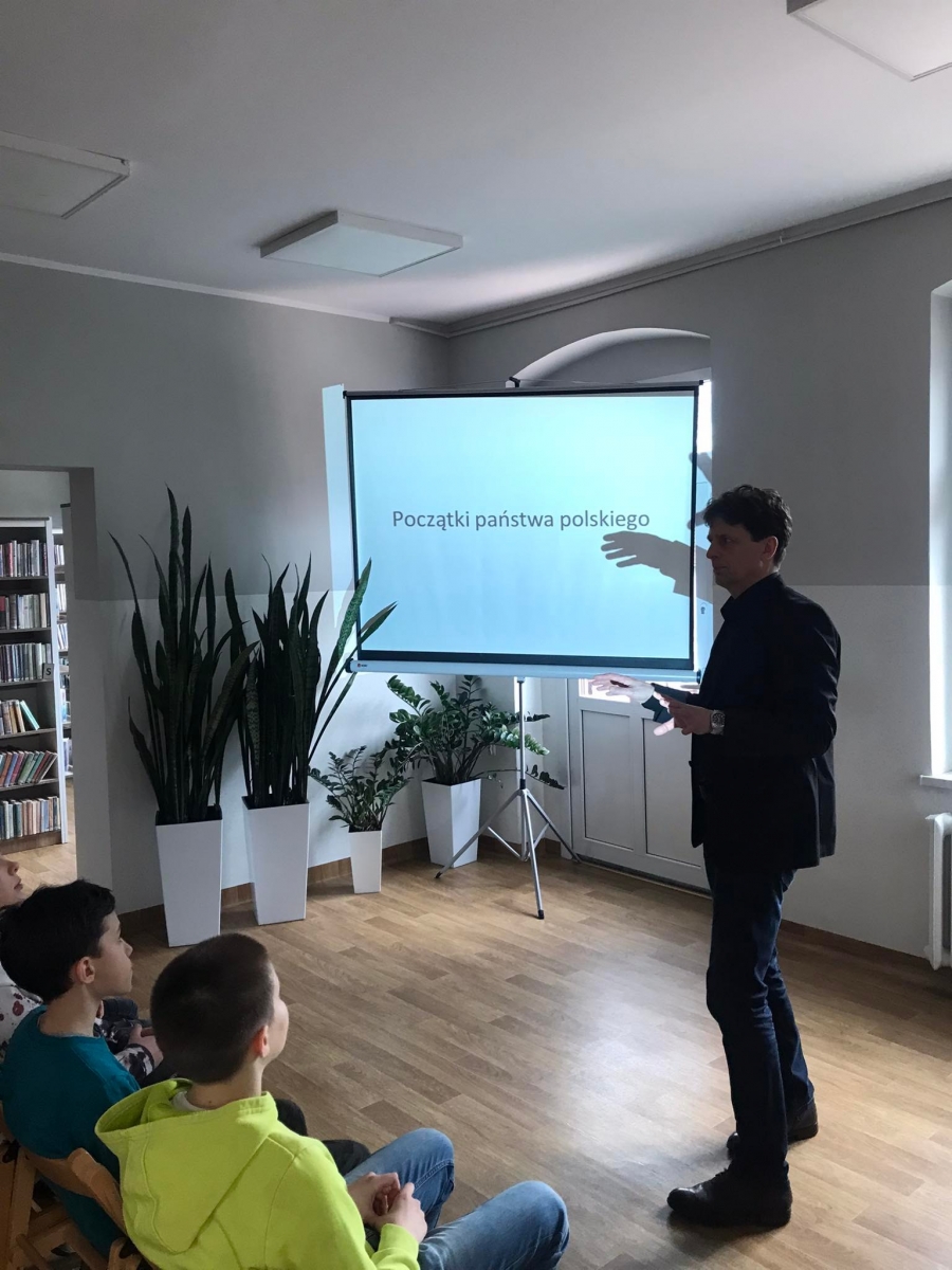 Pan Grzegorz zabrał nas w historyczną podróż do początków państwa polskiego. Dowiedzieliśmy się, że nazwa naszego kraju wzięła się od Polan, którzy zamieszkiwali jego zachodnie strony.
