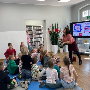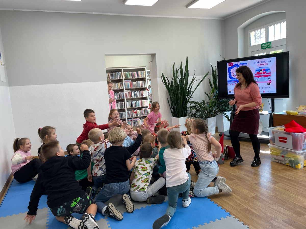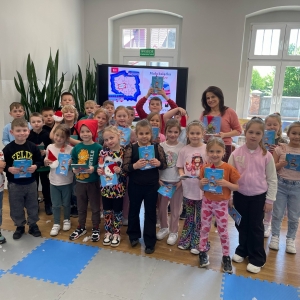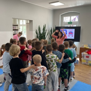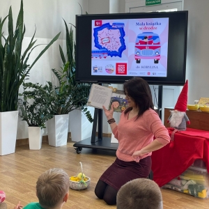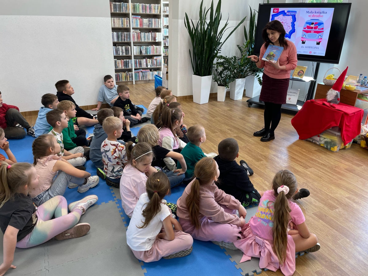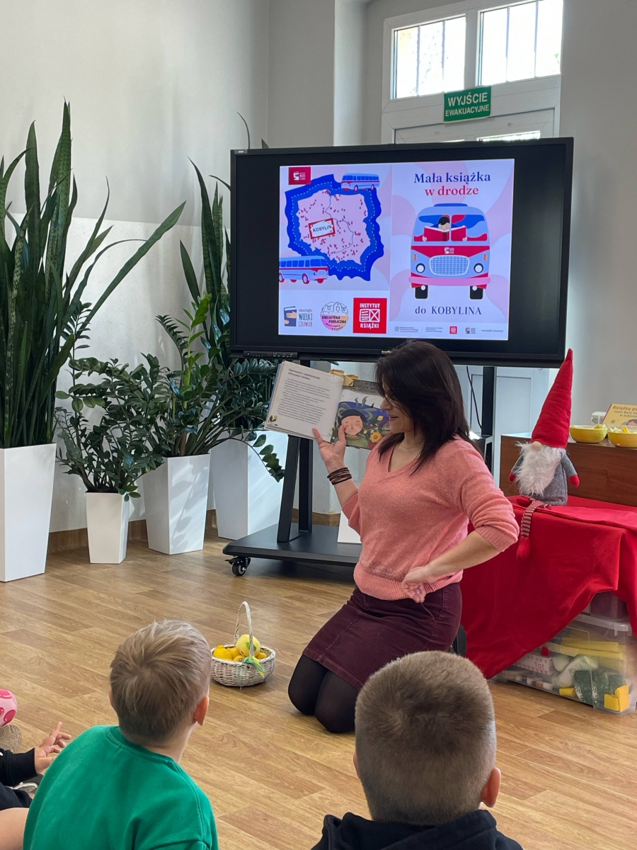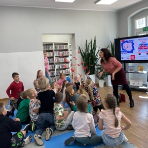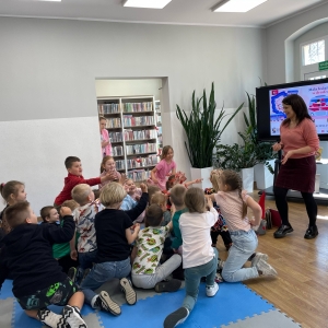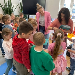 W poniedziałkowy poranek 28 kwietnia gościliśmy animatorkę, Panią Lucynę Brzezinską-Eluszkiewicz z Instytutu Książki, która przyjechała przeprowadzić warsztaty dla przedszkolaków z grupy „Biedronki”. Zajęcia organizowane były w ramach akcji „Mała książka - wielki człowiek", w której uczestniczymy.