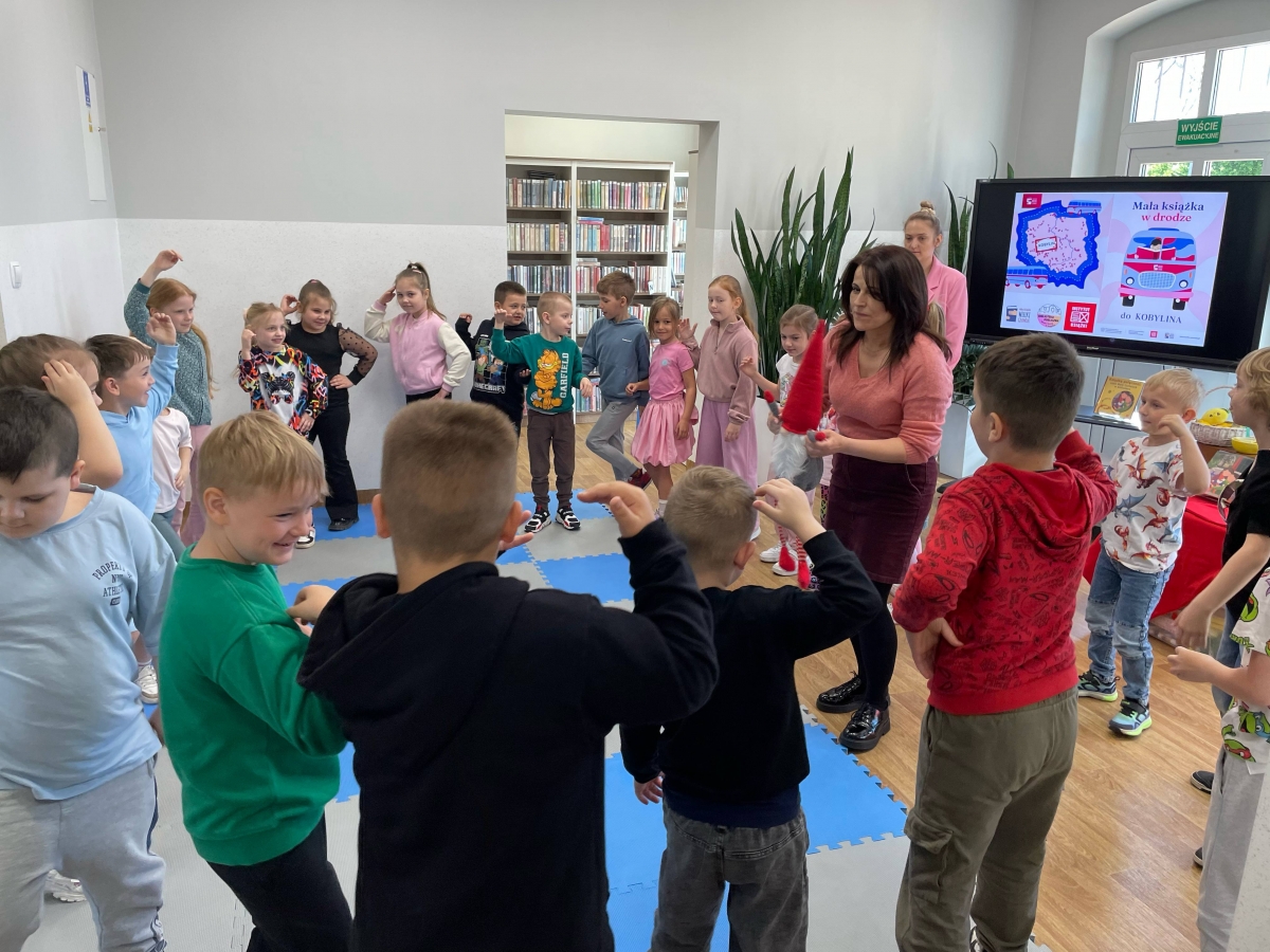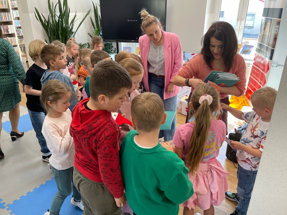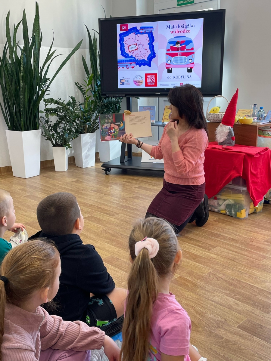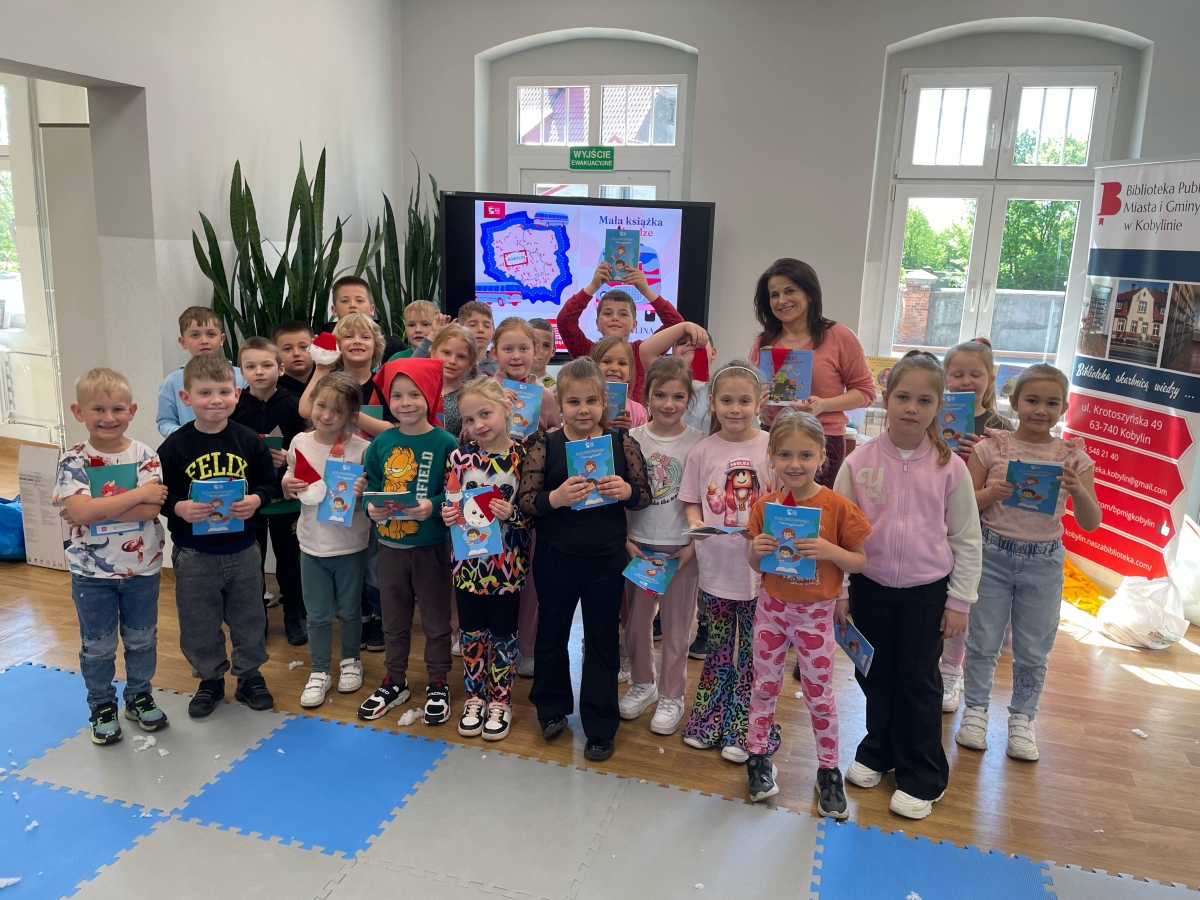 W poniedziałkowy poranek 28 kwietnia gościliśmy animatorkę, Panią Lucynę Brzezinską-Eluszkiewicz z Instytutu Książki, która przyjechała przeprowadzić warsztaty dla przedszkolaków z grupy „Biedronki”. Zajęcia organizowane były w ramach akcji „Mała książka - wielki człowiek", w której uczestniczymy.