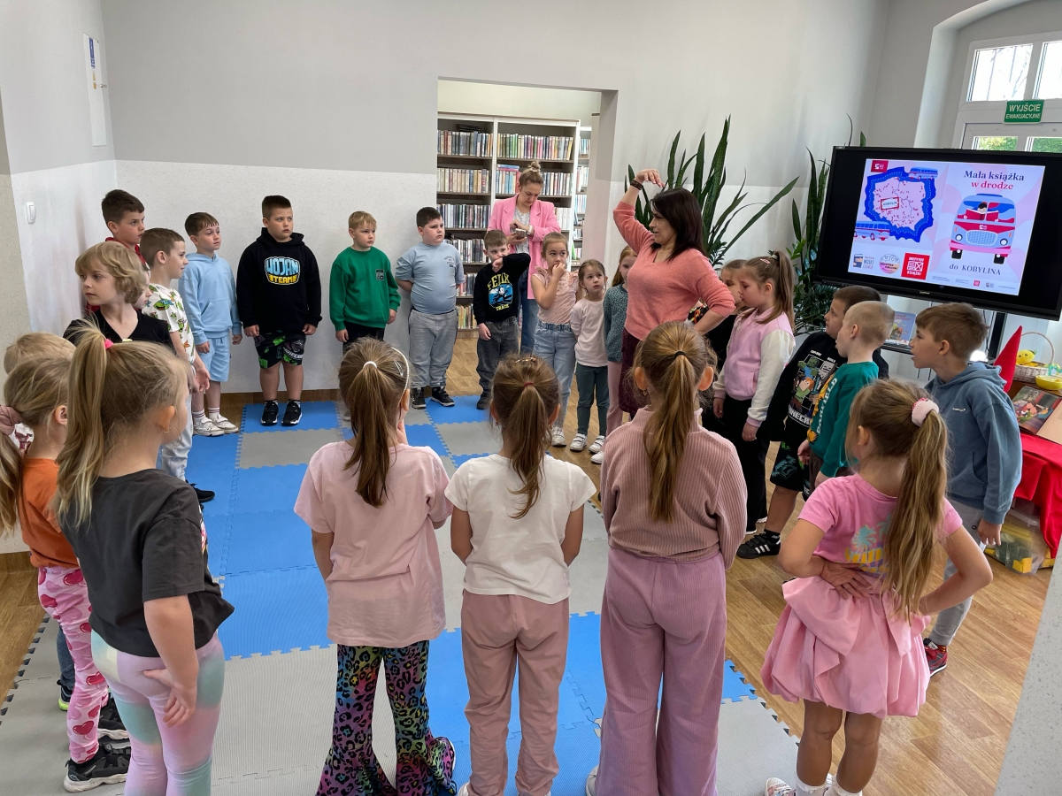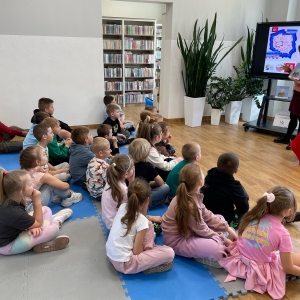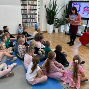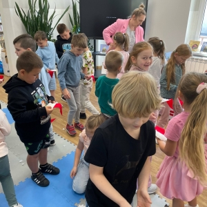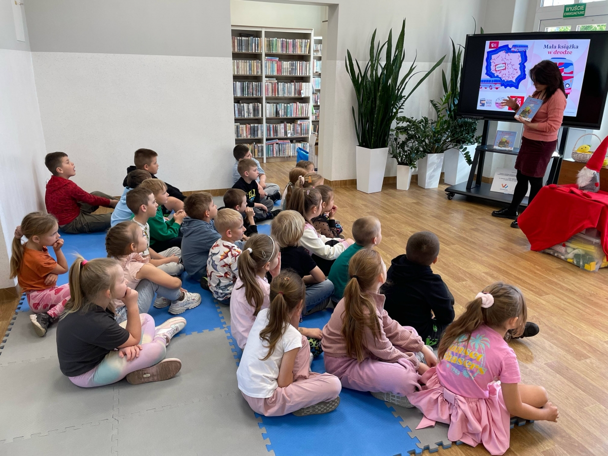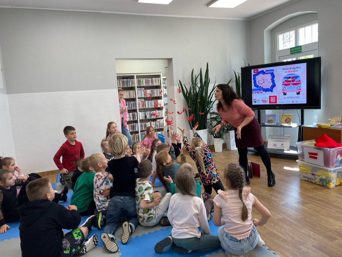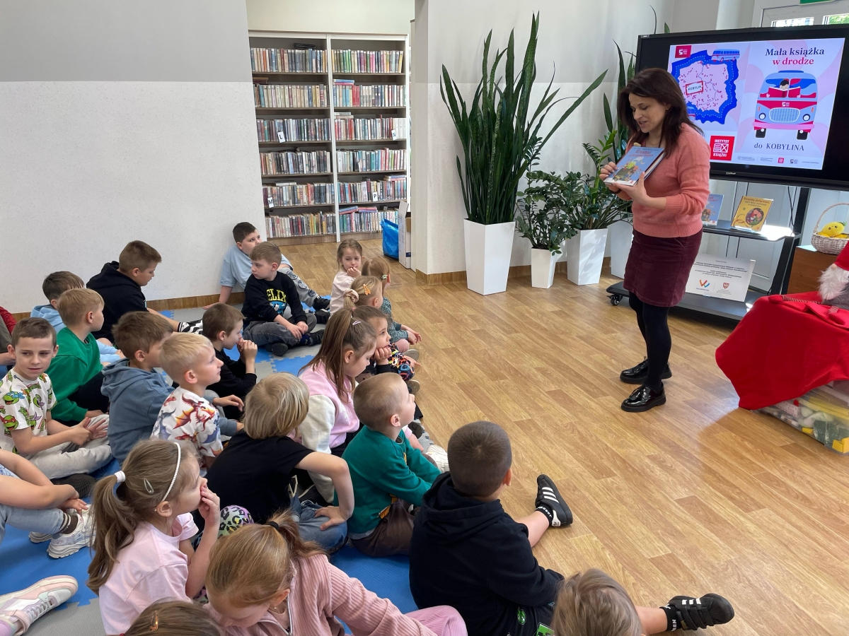 W poniedziałkowy poranek 28 kwietnia gościliśmy animatorkę, Panią Lucynę Brzezinską-Eluszkiewicz z Instytutu Książki, która przyjechała przeprowadzić warsztaty dla przedszkolaków z grupy „Biedronki”. Zajęcia organizowane były w ramach akcji „Mała książka - wielki człowiek", w której uczestniczymy.