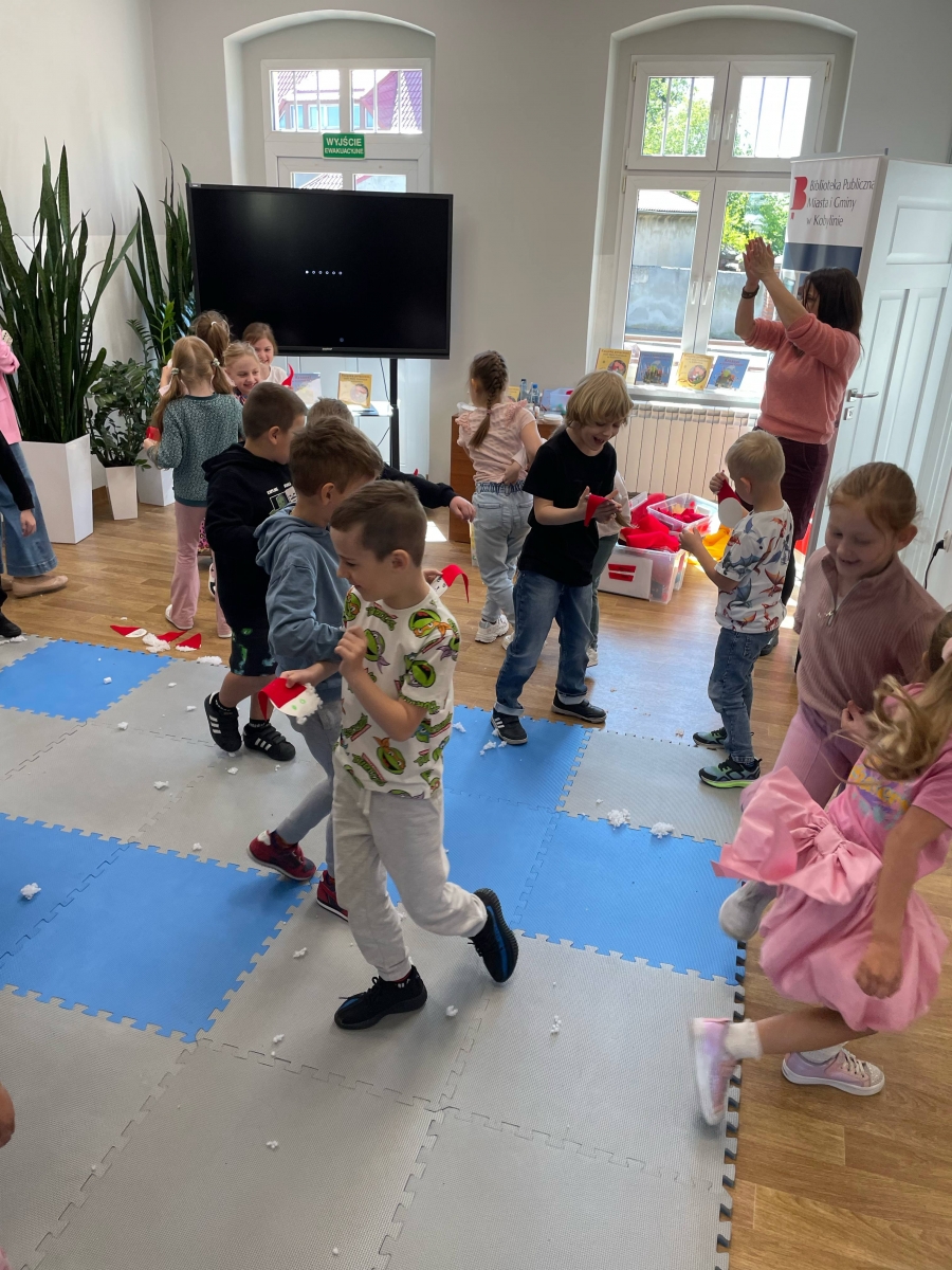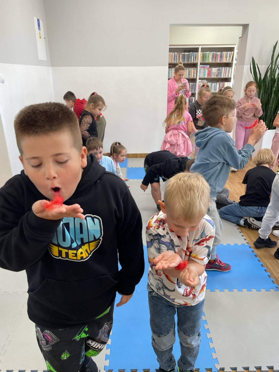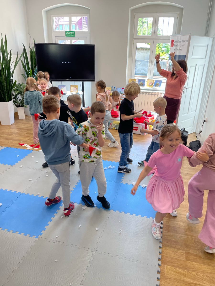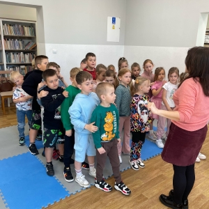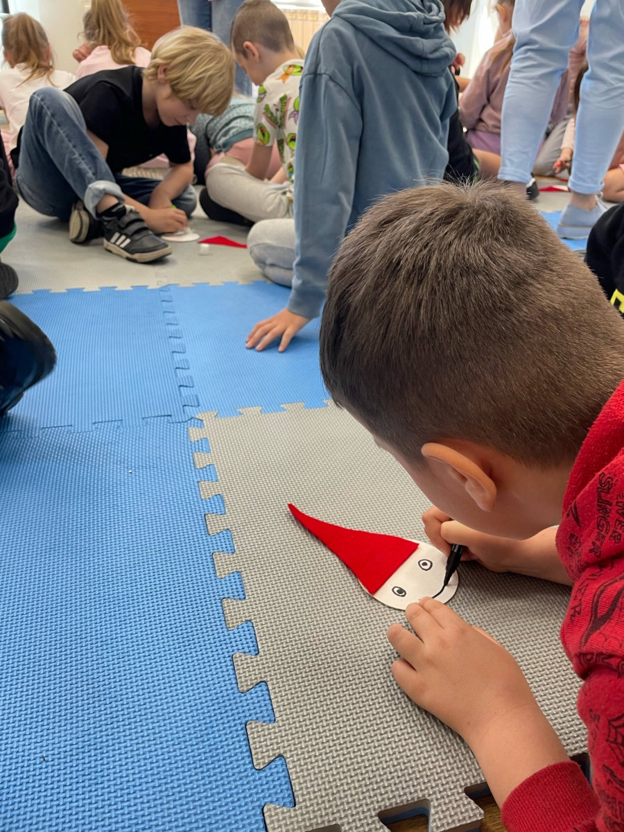 Animatorka wprowadziła dzieci w świat Krasnala w Krzywej Czapce – bohatera książki Wojciecha Widłaka. Na początku każdy zapoznał się z Krasnalem w rytmie wesołej muzyki. Najmłodsi wysłuchali kilka opowieści z książki, na przykład „Opowieść o najstarszym olbrzymie świata”, po której przedszkolacy, tak jak Olbrzym, próbowali zjeść kawałek cytryny, starając się nie zrobić kwaśnej miny. Nie było to łatwe zadanie!
