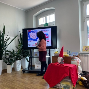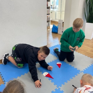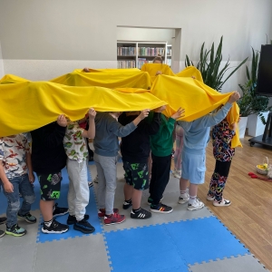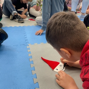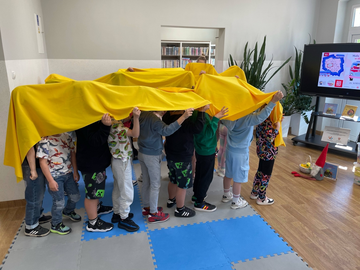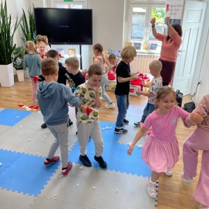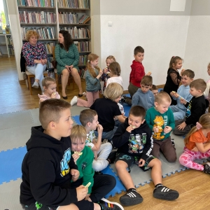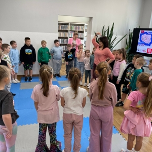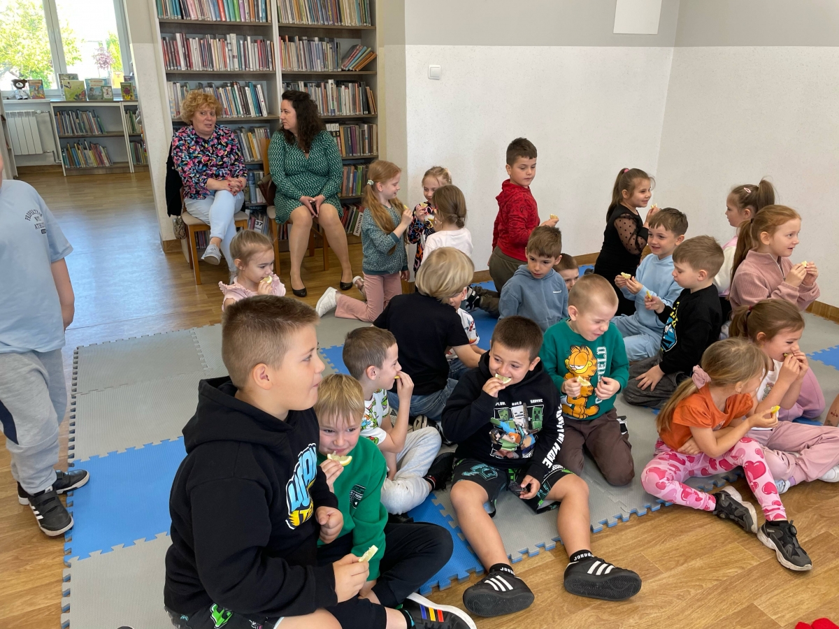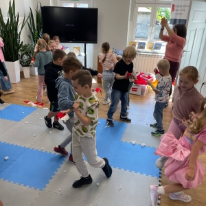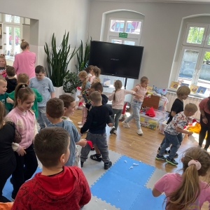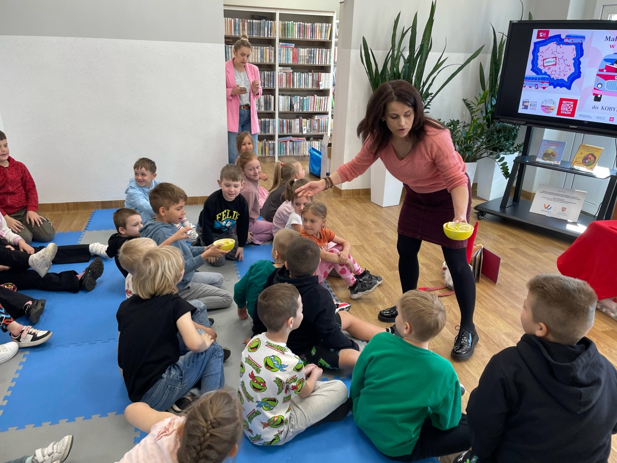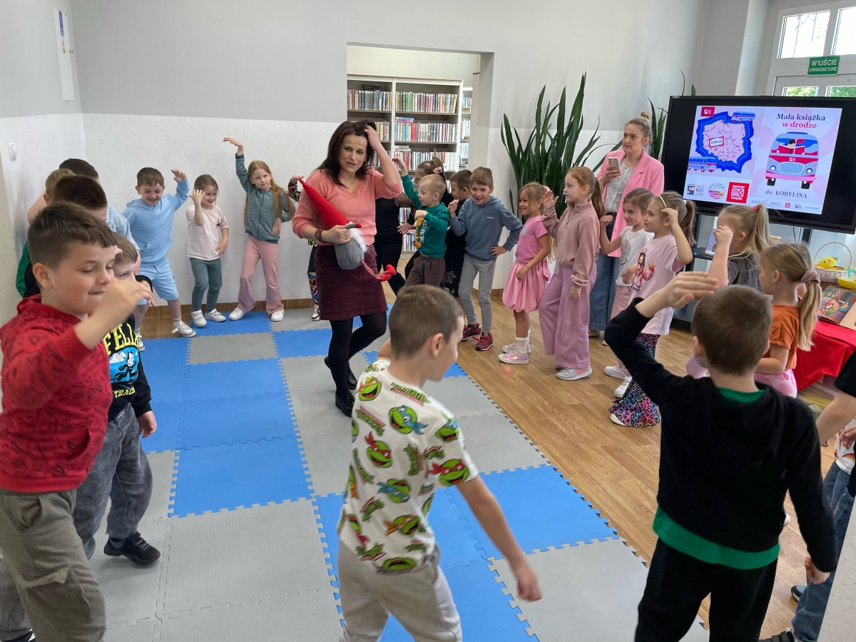 Animatorka wprowadziła dzieci w świat Krasnala w Krzywej Czapce – bohatera książki Wojciecha Widłaka. Na początku każdy zapoznał się z Krasnalem w rytmie wesołej muzyki. Najmłodsi wysłuchali kilka opowieści z książki, na przykład „Opowieść o najstarszym olbrzymie świata”, po której przedszkolacy, tak jak Olbrzym, próbowali zjeść kawałek cytryny, starając się nie zrobić kwaśnej miny. Nie było to łatwe zadanie!