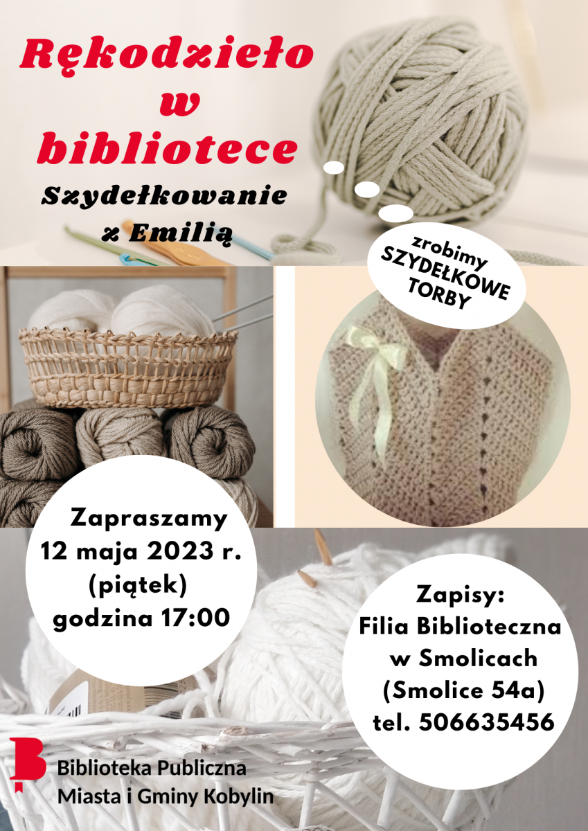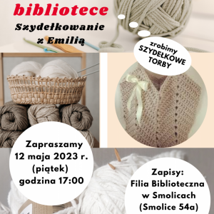 Filia Biblioteczna w Smolicach zaprasza na warsztaty rękodzielnicze - Rękodzieło w bibliotece, Szydełkowanie z Emilią. Spotkanie odbędzie się w piątek 12 maja o godzinie 17:00 w Filii Bibliotecznej w Smolicach.