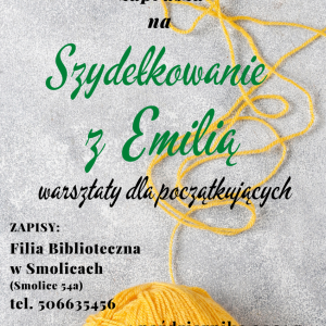 Filia Biblioteczna w Smolicach zaprasza na warsztaty rękodzieła - Szydełkowanie z Emilią. Warsztaty poprowadzi Pani Emilia Kaczmarek ze Smolic. Spotkanie odbędzie się w piątek 1 października 2021 r. o godzinie 17:00 w Filii Bibliotecznej w Smolicach, Smolice 54a. Dzierganie umili pyszna kawa i słodki poczęstunek.