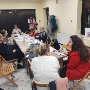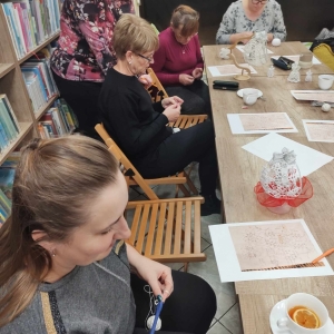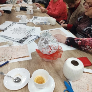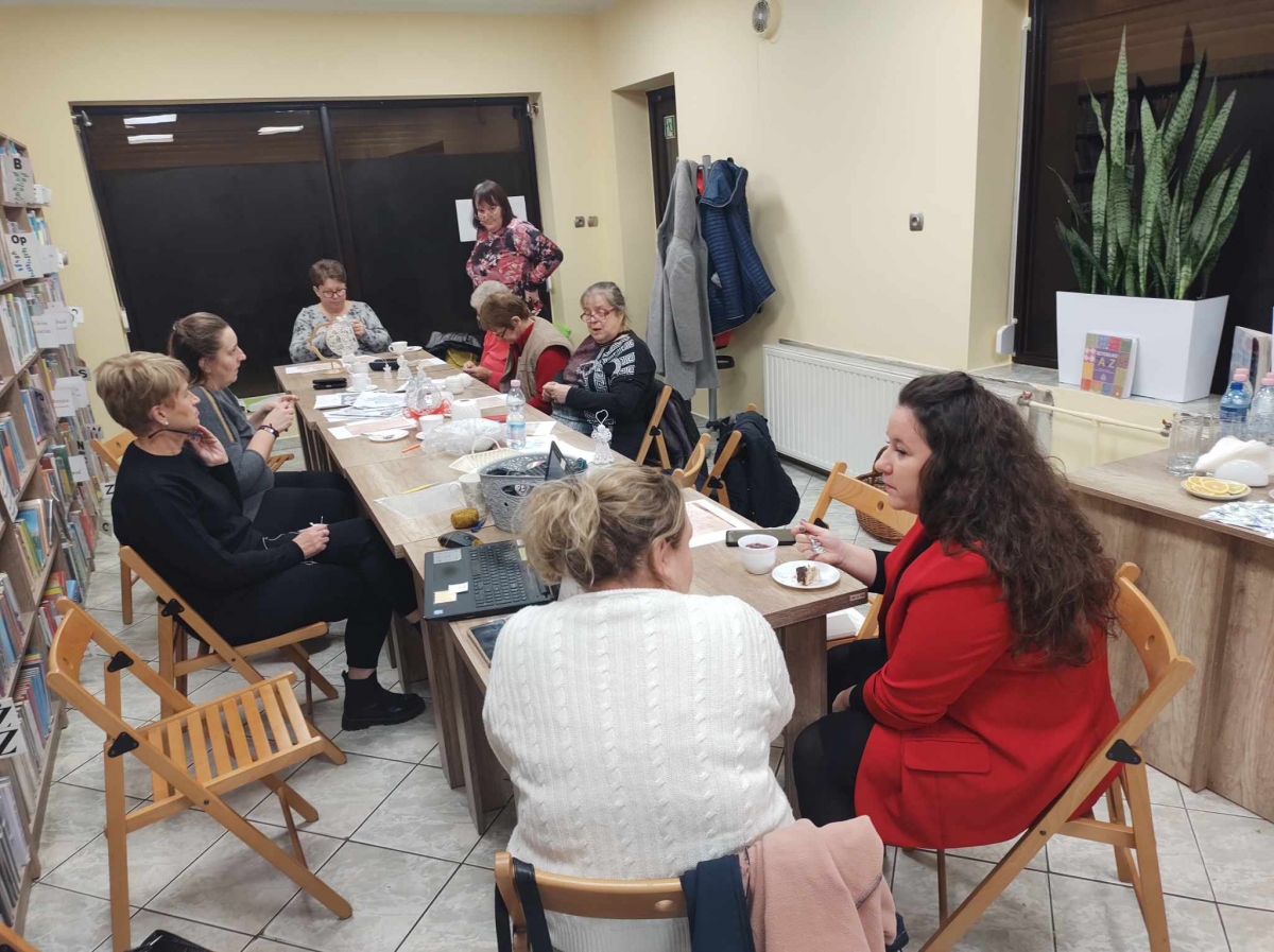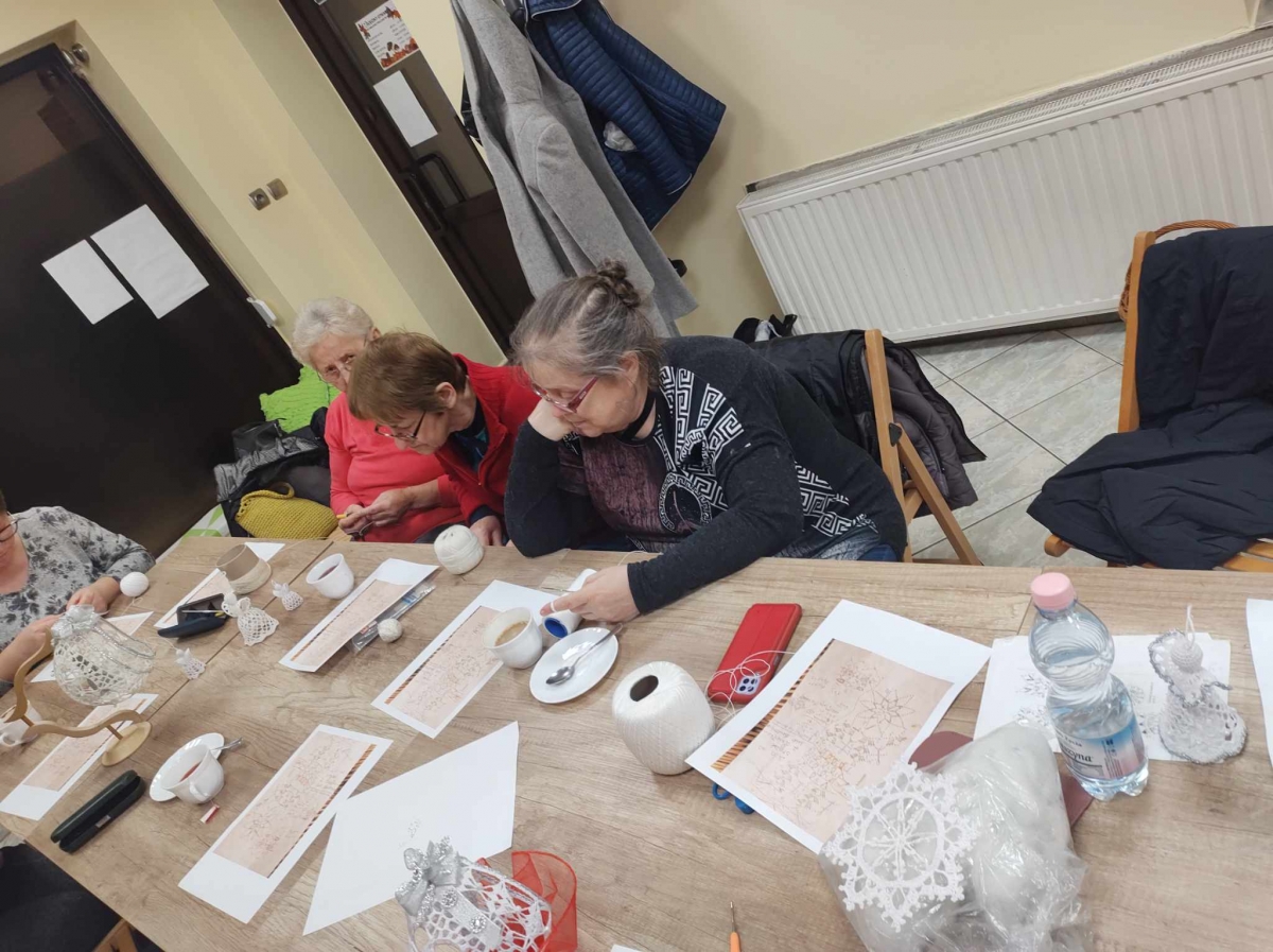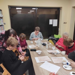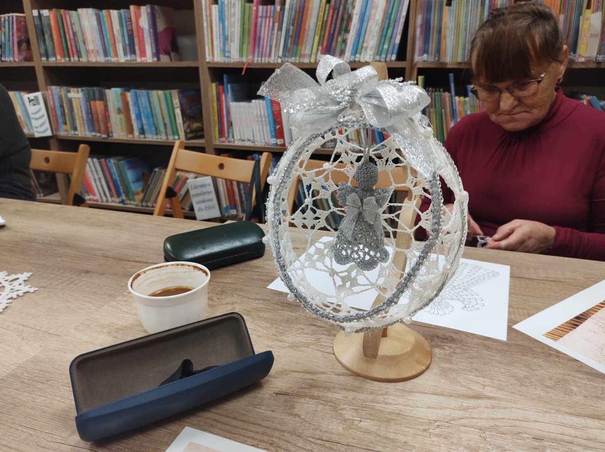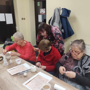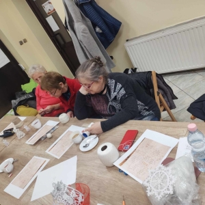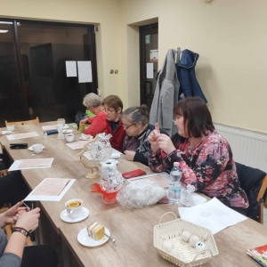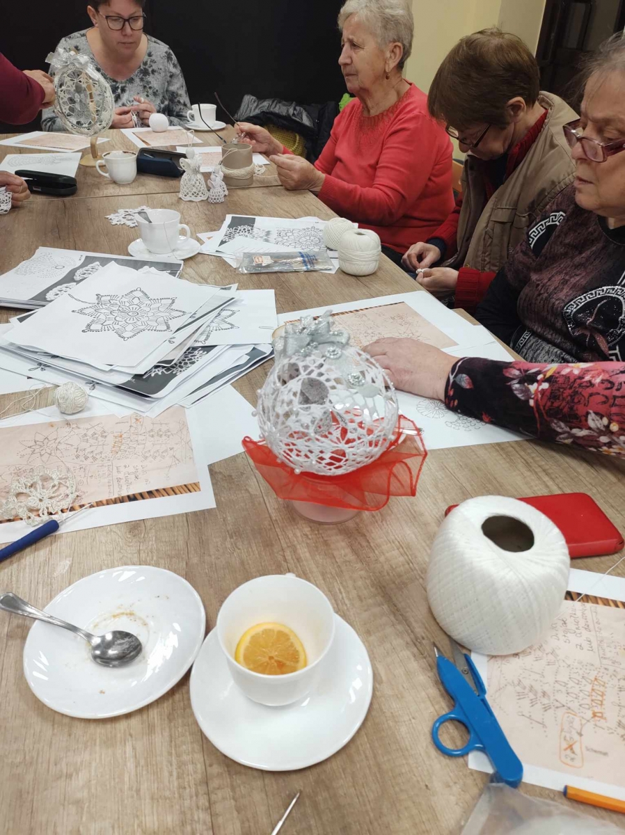 17 listopada 2023 r. w Filii Biblioteki Publicznej w Smolicach odbyło się kolejne spotkanie z cyklu Rękodzieło w bibliotece. W piątkowe popołudnie do biblioteki zawitały panie, które pod okiem prowadzącej, Pani Emilii Kaczmarek ze Smolic dziergały świąteczne ozdoby. Tym razem były to bombki. Nasze niezawodne czytelniczki popijając wyśmienitą kawę i jedząc słodki placek tworzyły kolejne słupki, półsłupki, oczka łańcuszka, oczka ścisłe. Z tych splotów powstały piękne bombki z aniołkami, którymi Panie przyozdobią swoje drzewka bożonarodzeniowe.
