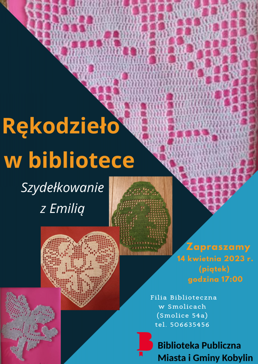 Filia Biblioteczna w Smolicach zaprasza na warsztaty rękodzielnicze - Rękodzieło w bibliotece, Szydełkowanie z Emilią. Spotkanie odbędzie w piątek 14 kwietnia o godzinie 17:00 w Filii Bibliotecznej w Smolicach.