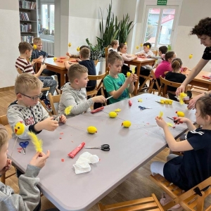 Tworzyliśmy kurczaki ze styropianowego jaja. Wykluwający się kurczak ze skorupki jest symbolem rodzącego się życia, nawiązującego do Zmartwychwstania Chrystusa.