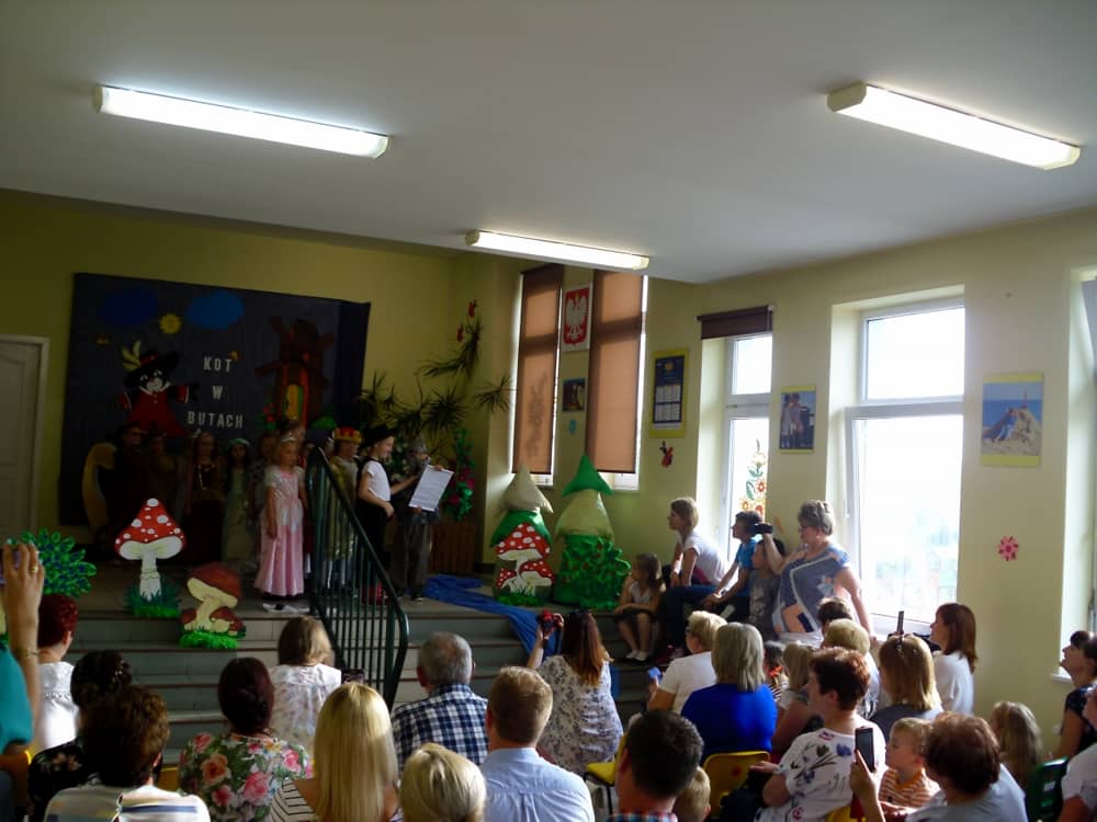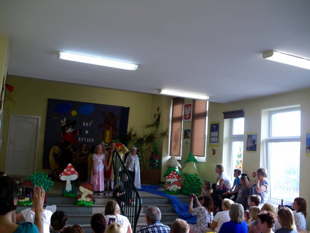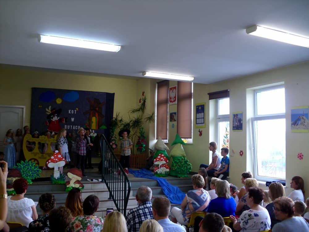 Wierni Czytelnicy zostali zaproszeni do Zespołu Szkoła Podstawowa im. Juliana Tuwima i Przedszkole w Kobylinie na przedstawienie pt. „Kot w butach”, które zostało wyreżyserowane przez panią Arletę Barteczkę. Bohaterami spektaklu były dzieci z tutejszego przedszkola.