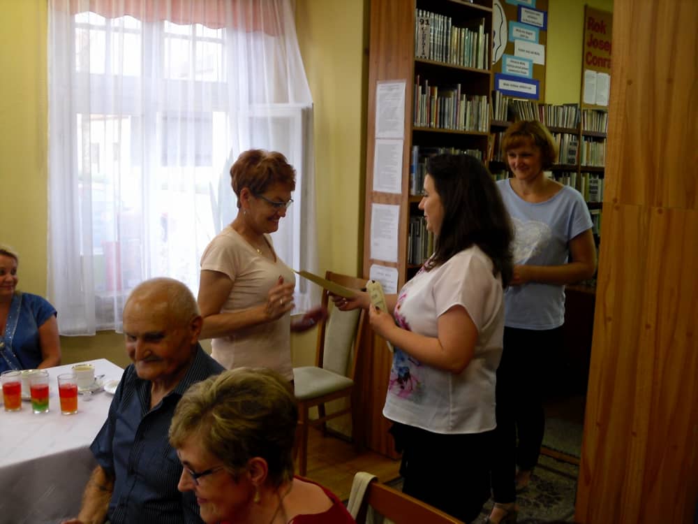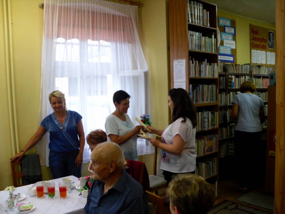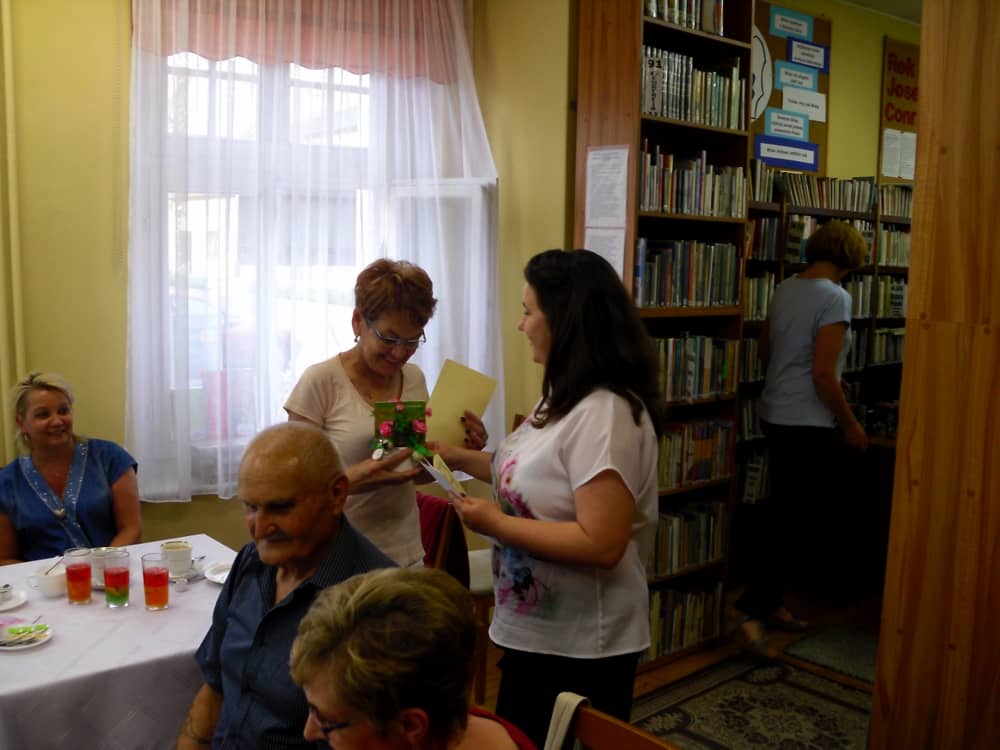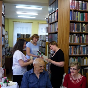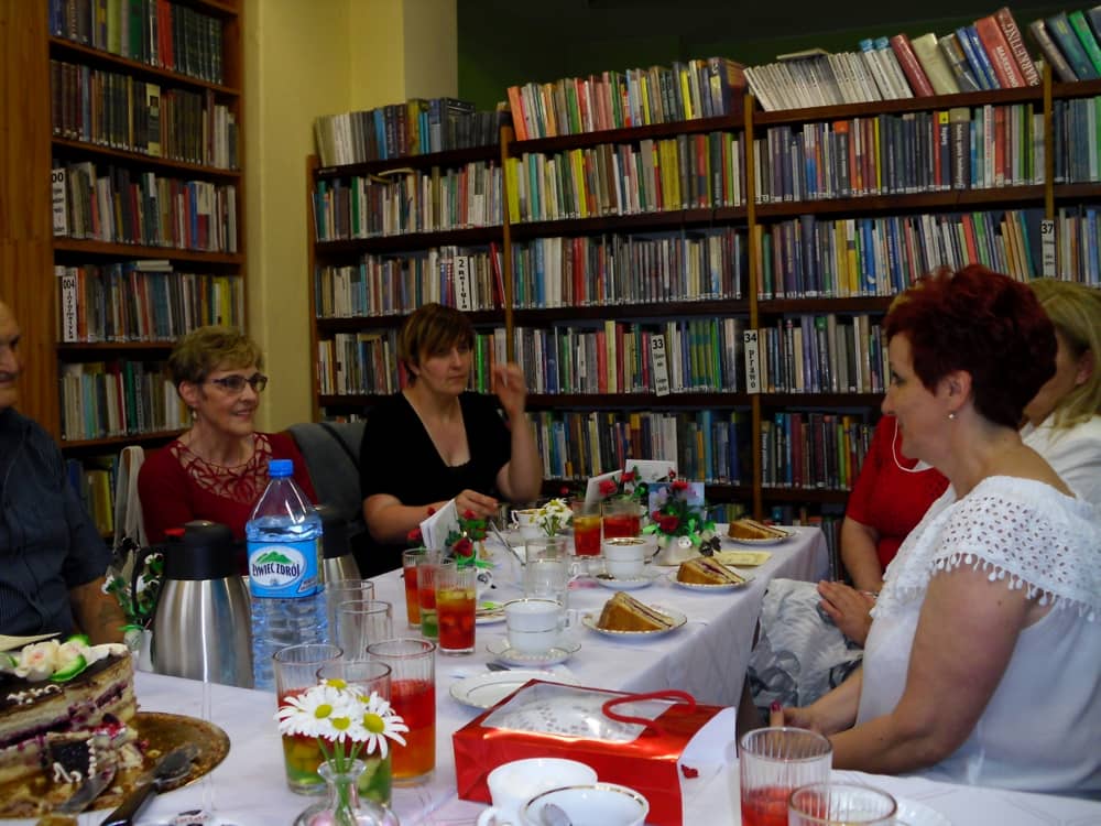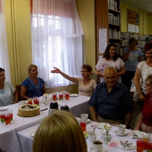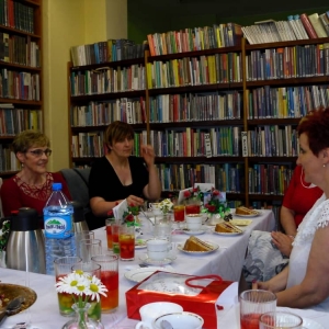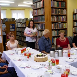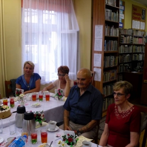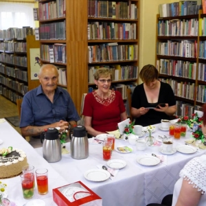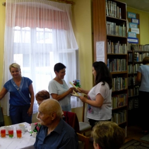 Po teatrzyku udaliśmy się do biblioteki, gdzie zaproszeni goście otrzymali dyplomy Wiernego Czytelnika oraz upominki. Pozostała część spotkania upłynęła na rozmowach przy kawie oraz słodkim poczęstunku.