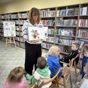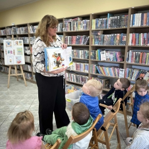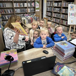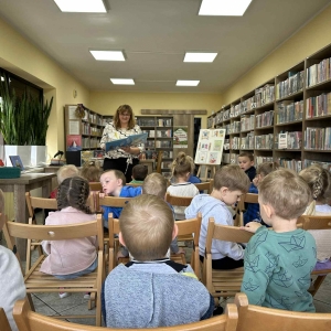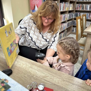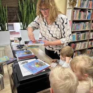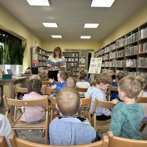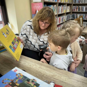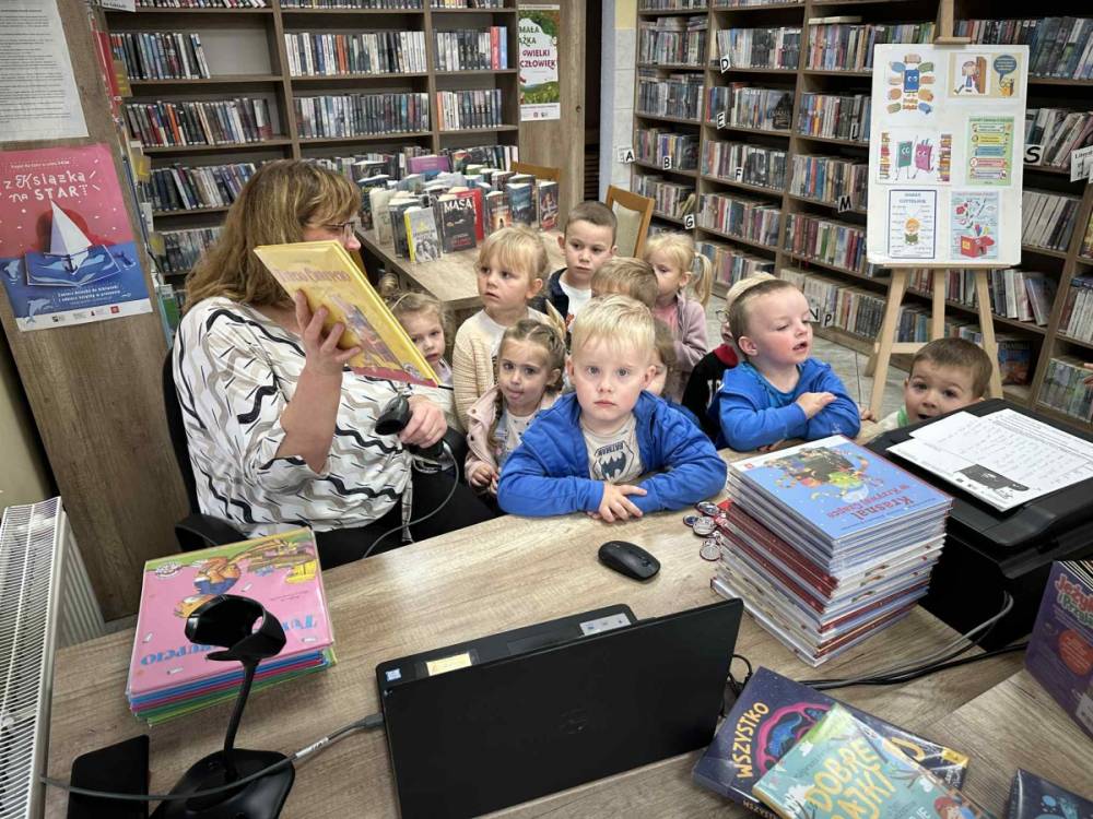 Przybyli wzięli także udział w ogólnopolskim projekcie MAŁA KSIĄŻKA – WIELKI CZŁOWIEK. Akcja ta jest skierowana do dzieci w wieku przedszkolnym i ich rodziców, by zachęcić do regularnego odwiedzania Biblioteki i codziennego, wspólnego czytania.
