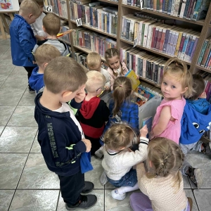 To była pierwsza wizyta młodych czytelników w Bibliotece. Dowiedzieli się co to jest biblioteka, jakie książki się w niej znajdują, jak nazywa się osoba w niej pracująca oraz czym się zajmuje. Poznali również zasady panujące w książnicy. Wspólnie z bibliotekarką uzgodnili, jak należy dbać o książki, co wolno, a czego nie powinno się robić czytając lekturę. Z zainteresowaniem wysłuchali książki Davida Mellinga pt.: „Miś Tuliś idzie do przedszkola”. Młodzi adepci czytania wcielili się w rolę bibliotekarza wypożyczając książki.