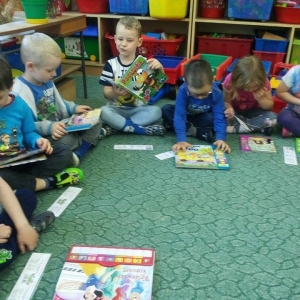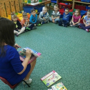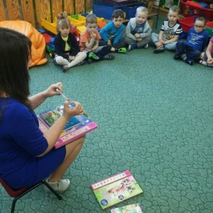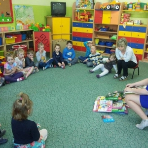 Na początku spotkania Pani dyrektor objaśniła przedszkolakom, jakie zasady obowiązują w bibliotece i w jaki sposób należy obchodzić się z książką, aby jej nie zniszczyć.
